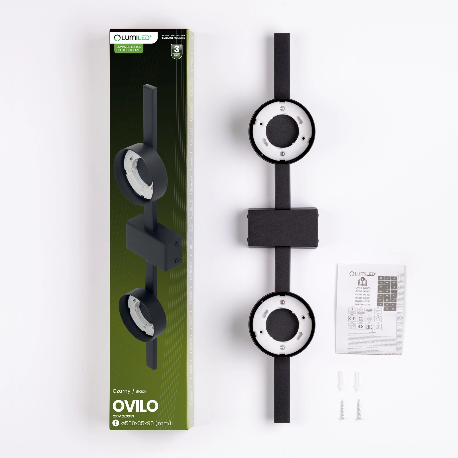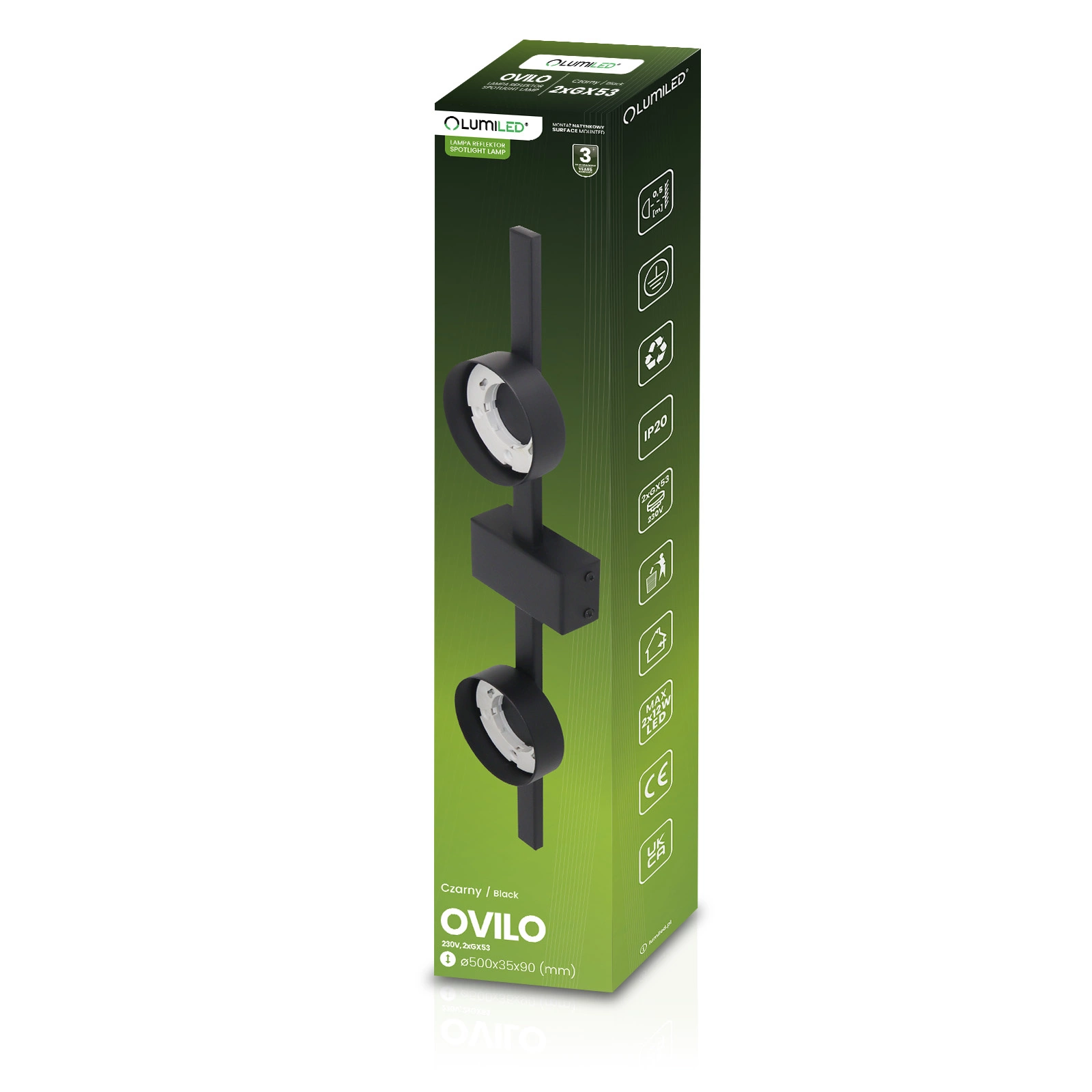 Svítidlo je vybaveno šroubovací paticí (závitem) GX53, která nám umožňuje zvolit si LED a klasické žárovky vhodného výkonu a barvy světla podle našich potřeb, maximální výkon světelného zdroje však nesmí překročit 12W LED.