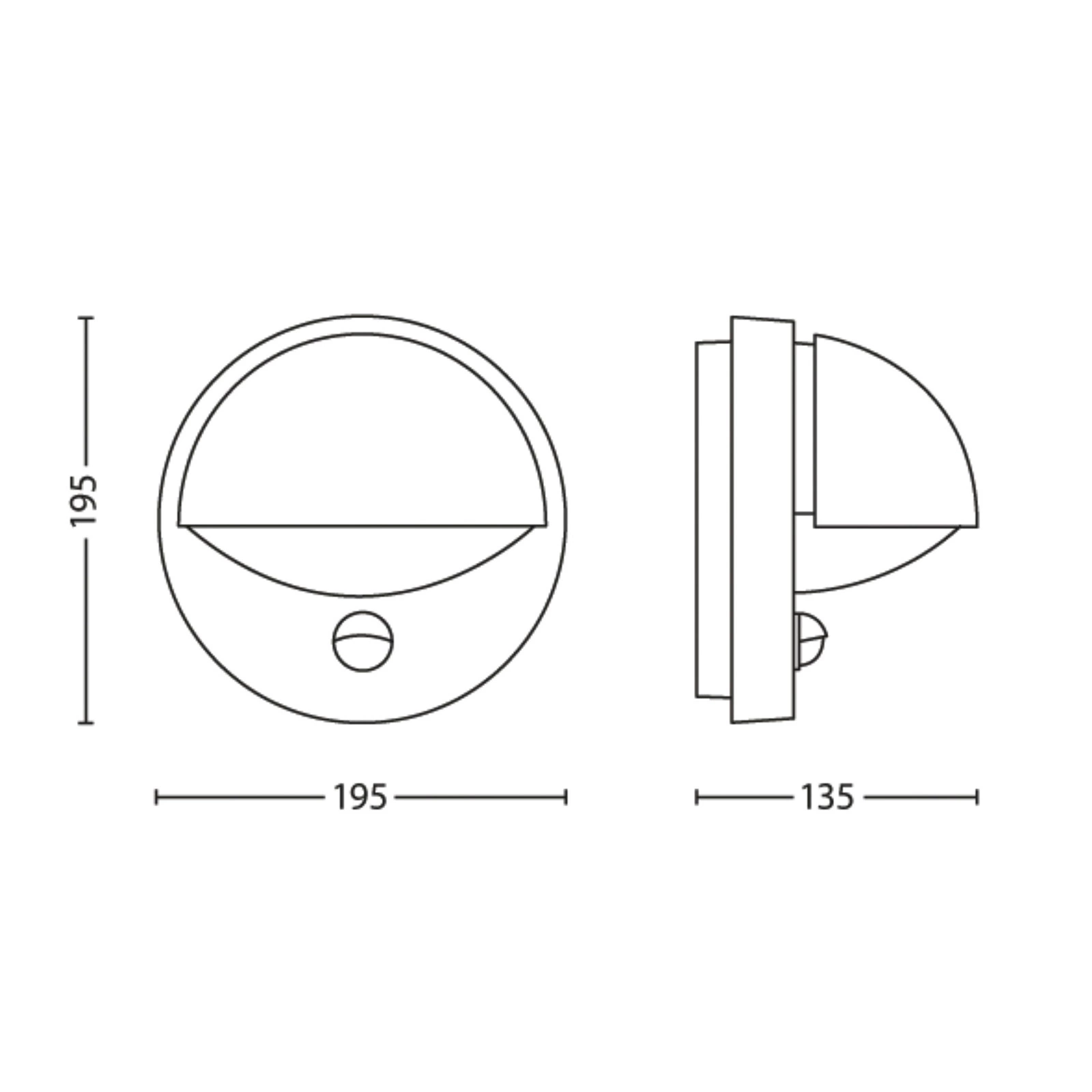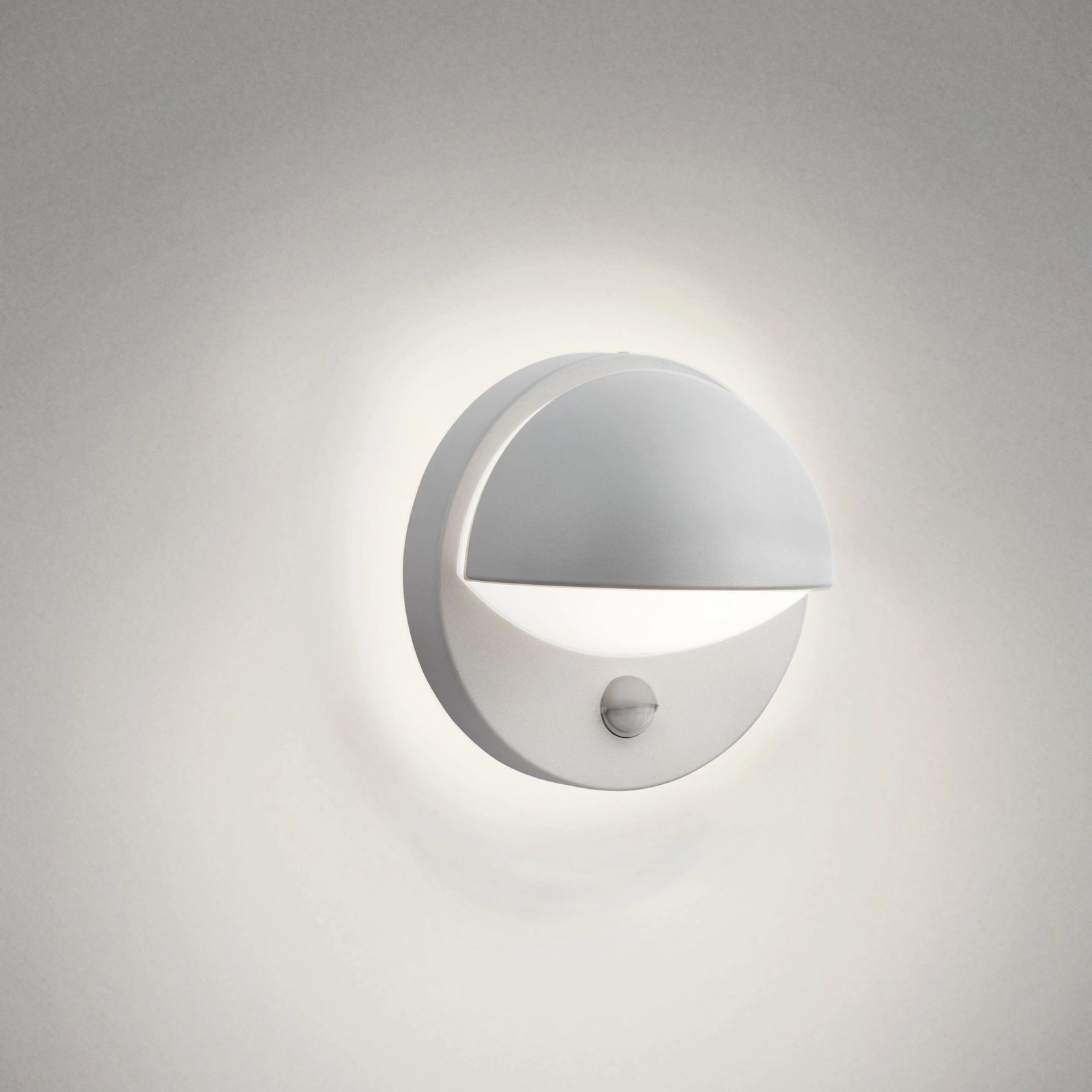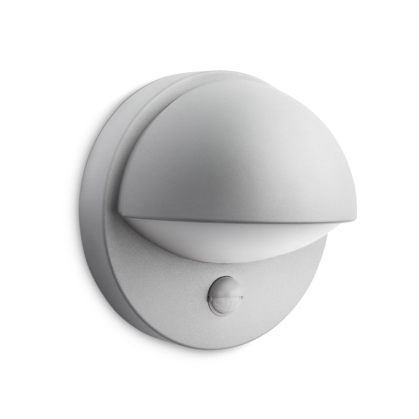 PHILIPS Zahradní venkovní nástěnné svítidlo JUNE E27 IP44 s pohybovým čidlem kulaté šedé