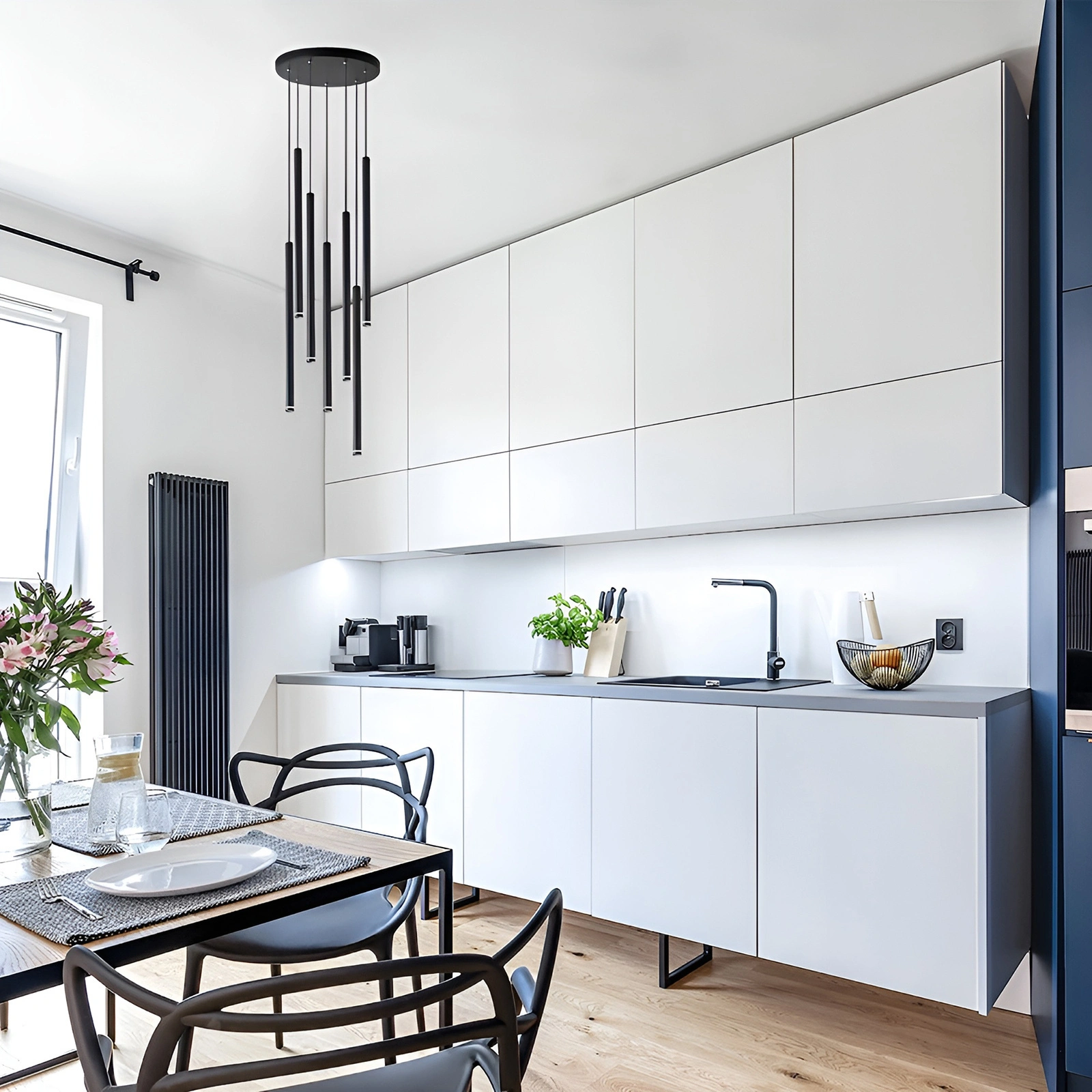 Závěsné svítidlo ze série Piero je moderní světlo připevněné ke kruhovému podstavci v elegantní černé barvě. Ideálně se hodí do moderních i klasických interiérů a dodá každému interiéru jedinečný nádech. Závěsné svítidlo je ideální do obývacího pokoje, ložnice, nad jídelní stůl i do komerčních prostor. Svítidlo je vybaveno sedmi světelnými zdroji s paticí G9 s maximálním výkonem 35 W. Typ vyzařovaného světla závisí na typ vyzařovaného světla závisí na žárovce zvolené uživatelem, což umožňuje přizpůsobit osvětlení individuálním potřebám - od teplé přes neutrální až po studenou, podle toho, jakou atmosféru chcete vytvořit.