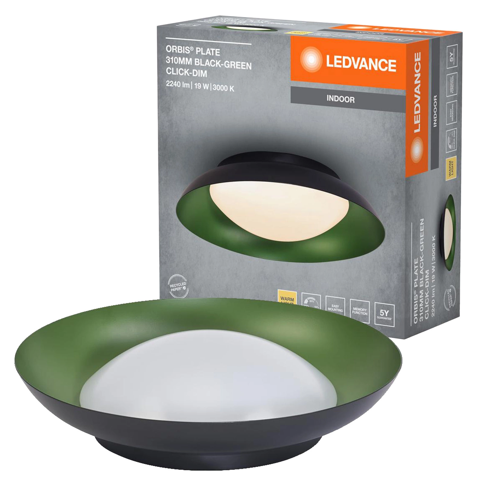 Plafond Koupelnové stropní světlo Povrchová montáž 19W 1000lm 3000K Teplá černá zelená IP20 Stmívatelné Obris Ledvance