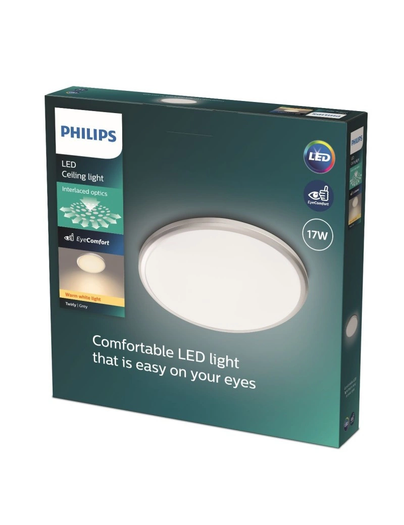 Stropní svítidlo LED od Philips je dokonalou kombinací moderního designu, inovativních technologií a funkčnosti, usnadňují a zefektivňují každodenní činnosti. Vytvoření přirozené atmosféry v místnosti pomocí osvětlení, které lze namontovat na strop nebo na stěnu. Tato lampa vrhá rozptýlené teplé světlo, které rozzáří každý kout místnosti.