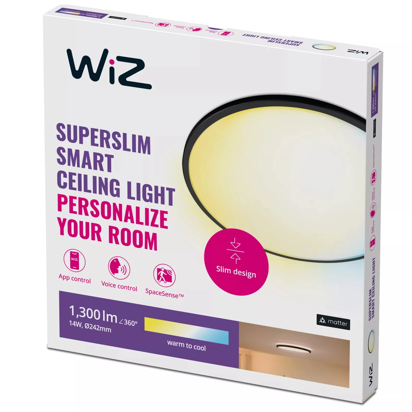 Inteligentní stropní svítidlo LED, řada plafond WiZ SuperSlim je moderní řešení osvětlení, které kombinuje pokročilou technologii s elegantním designem. Svítidlo je energeticky úsporné a zároveň poskytuje dostatek světla pro většinu interiérů. Je vybaveno pokročilou technologií SMART WiFi a poskytuje uživatelský komfort a široké možnosti personalizace osvětlení prostřednictvím ovládání přes mobilní aplikaci WiZ Connected.