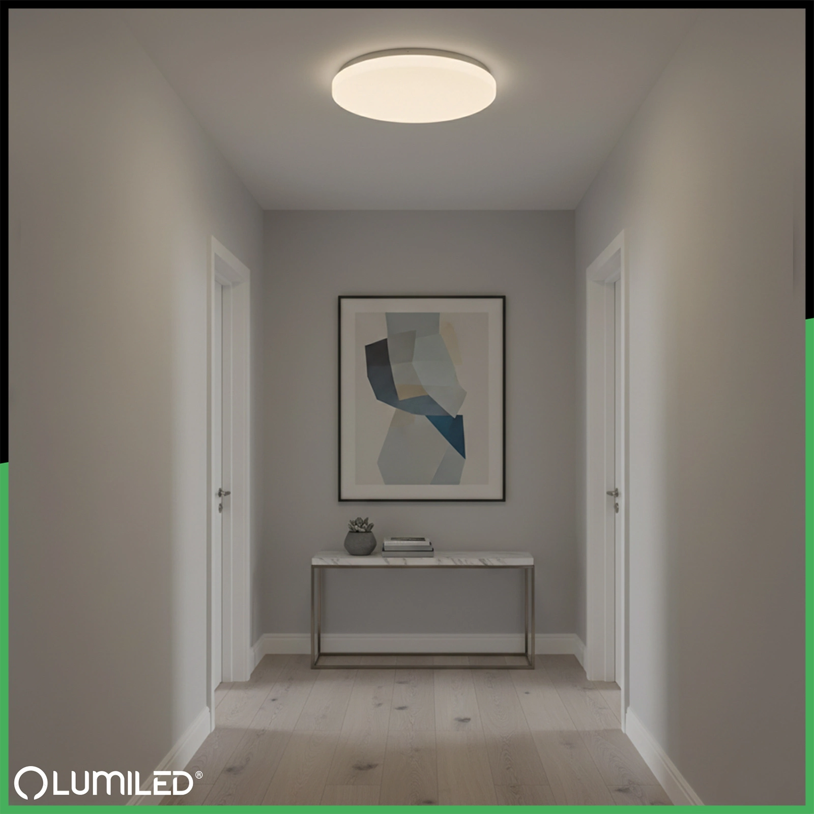 LED plafón o průměru 50 cm je moderní řešení osvětlení, které kombinuje atraktivní design s vysokou energetickou účinností. Kulatý tvar a mléčné stínítko zajišťují rovnoměrný rozptyl světla, což má pozitivní vliv na komfort používání a estetiku interiéru. Díky měkkému mléčnému stínidlu vytváří lampa příjemnou atmosféru, která je ideální pro ložnice, obývací pokoje nebo jiné domácí prostory.