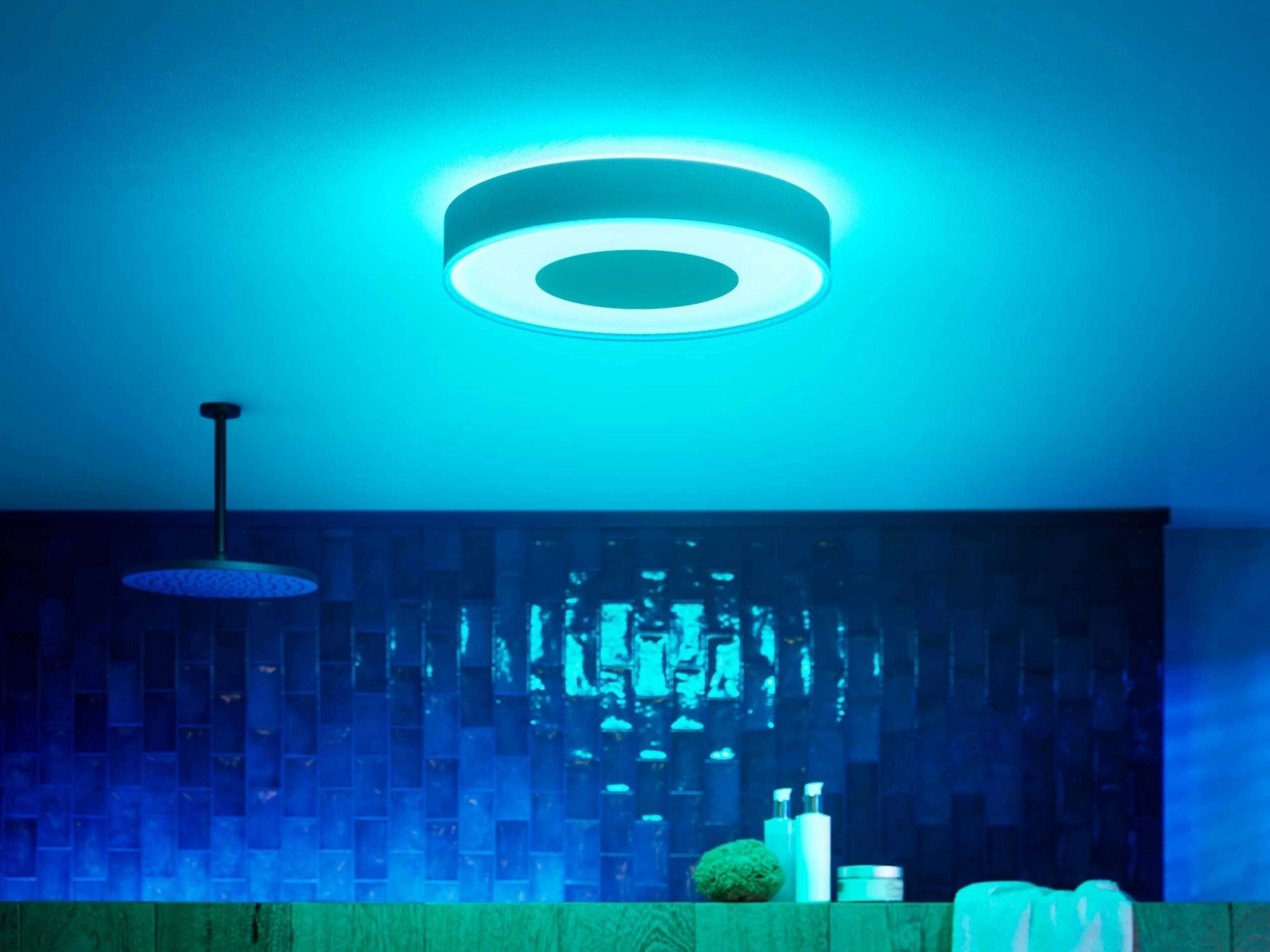 Stropní světlo v koupelně HUE Xamento LED uznávaný a respektovaný v oboru osvětlení Philips. Plafón vybavený integrovaným světelným zdrojem LED z 52,5W a velmi účinný světelný výkon - 3700 lm. Lampa naplní místnost barevným světlem a širokou paletou bílého světla, navodit správnou náladu a usnadnit každodenní činnosti. Vysoký stupeň vodotěsnosti zaručený krytím IP44 umožňuje instalaci v místnostech s vysokou vlhkostí, jako jsou koupelny. Stropní světlo HUE Xamento může fungovat samostatně nebo jako součást systému chytrého osvětlení po připojení k můstku Hue Bridge.