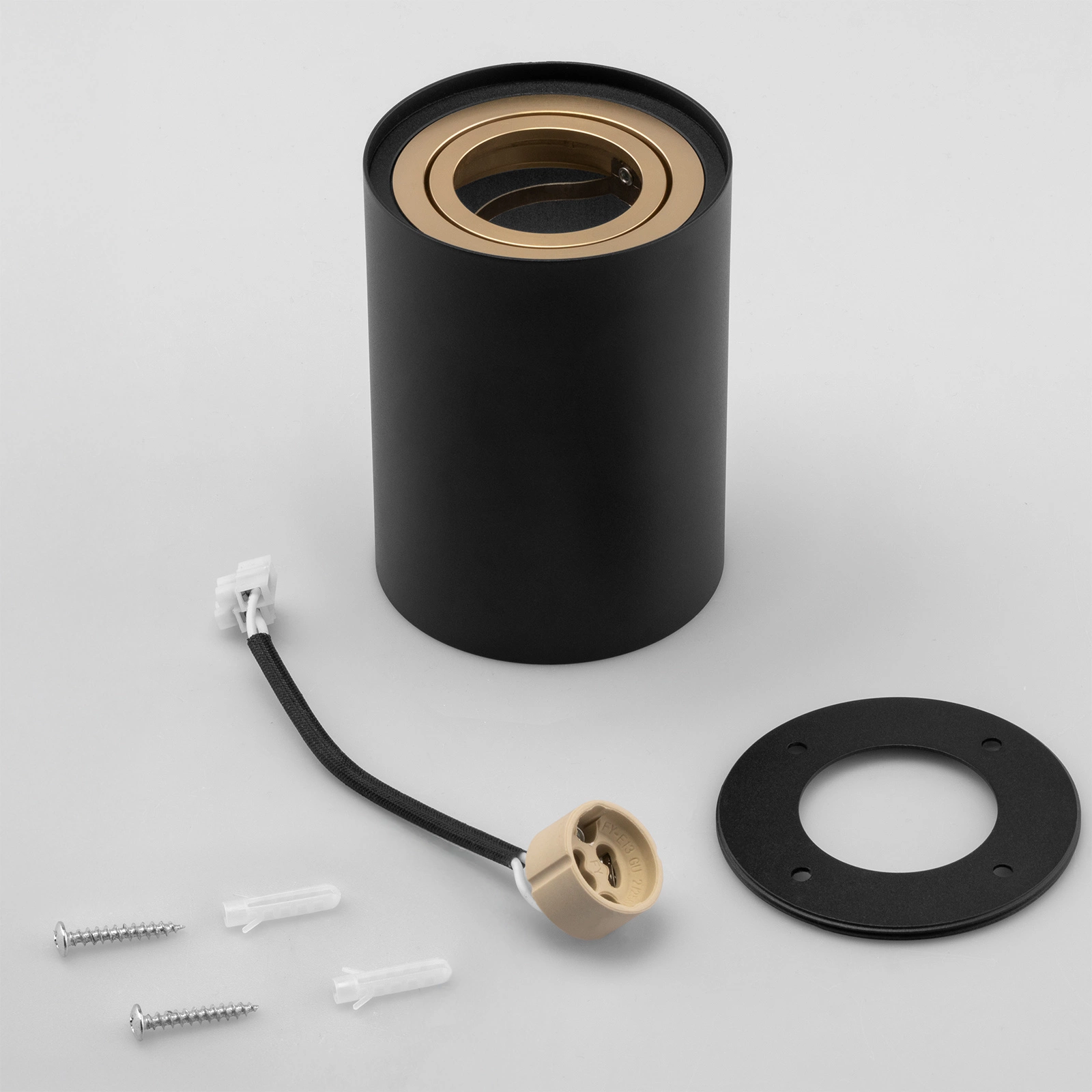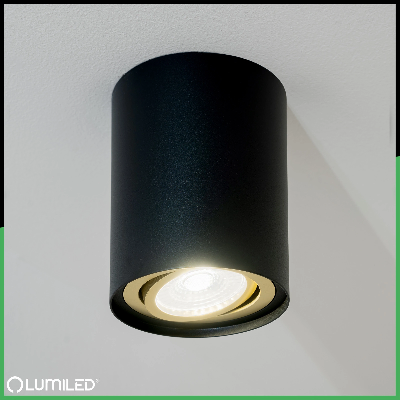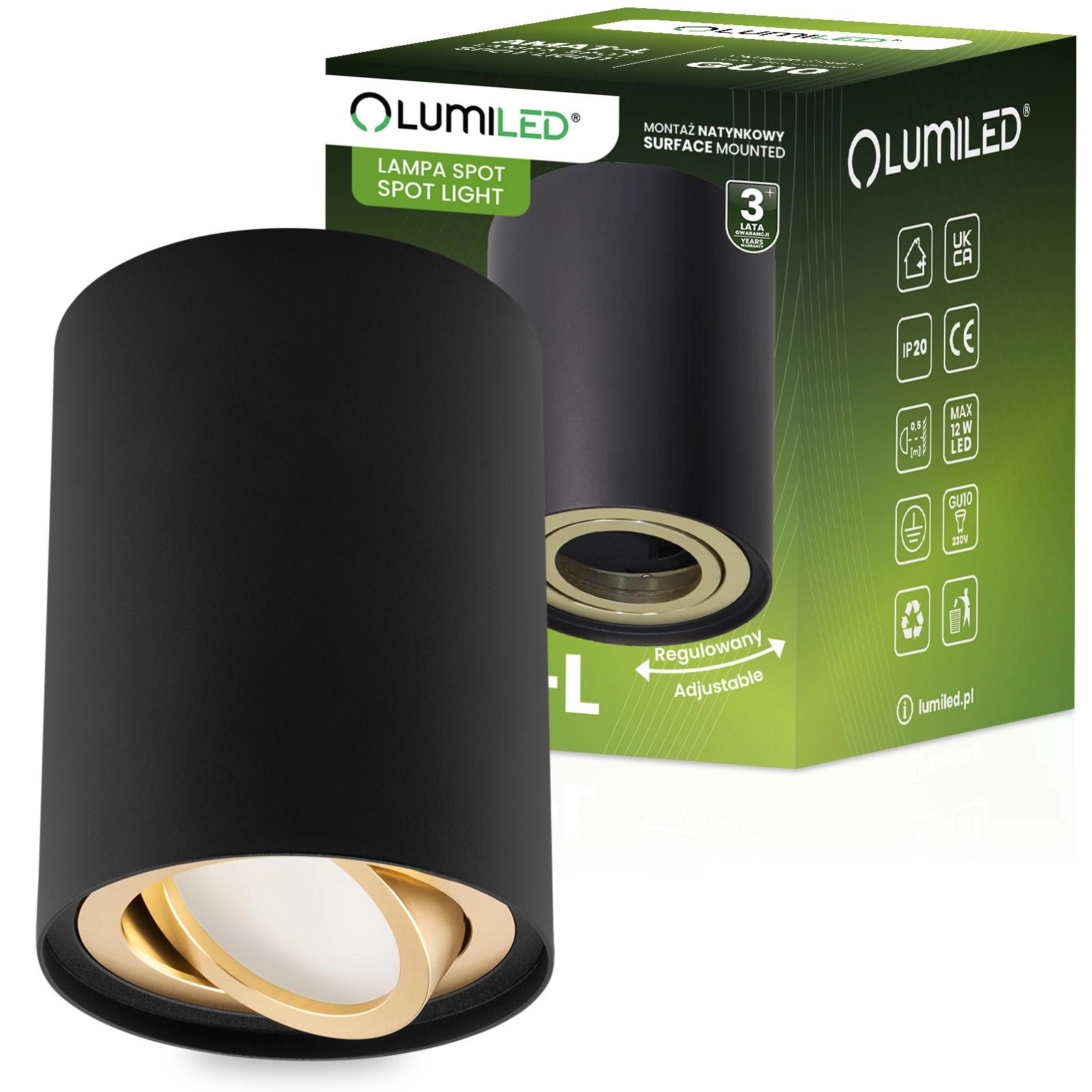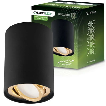 Kruhové pohyblivé svítidlo pro povrchovou montáž v černé a zlaté sérii AMAT L s výškou 115 mm značky LUMILED. Jedná se o moderní zdroj světla. Halogenové svítidlo bude poutavou dekorací i dokonalým doplňkem moderních nebo minimalistických interiérů, kterým dodá šarm a změní jejich vzhled.