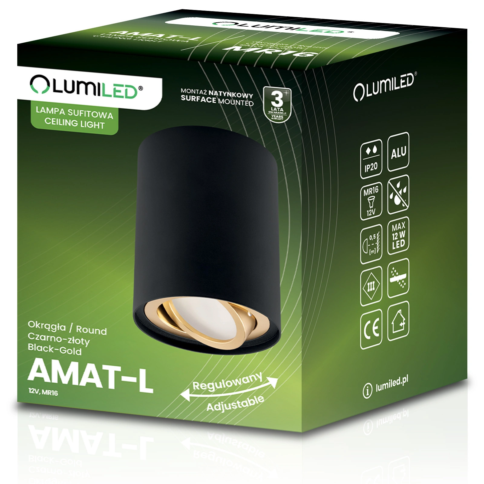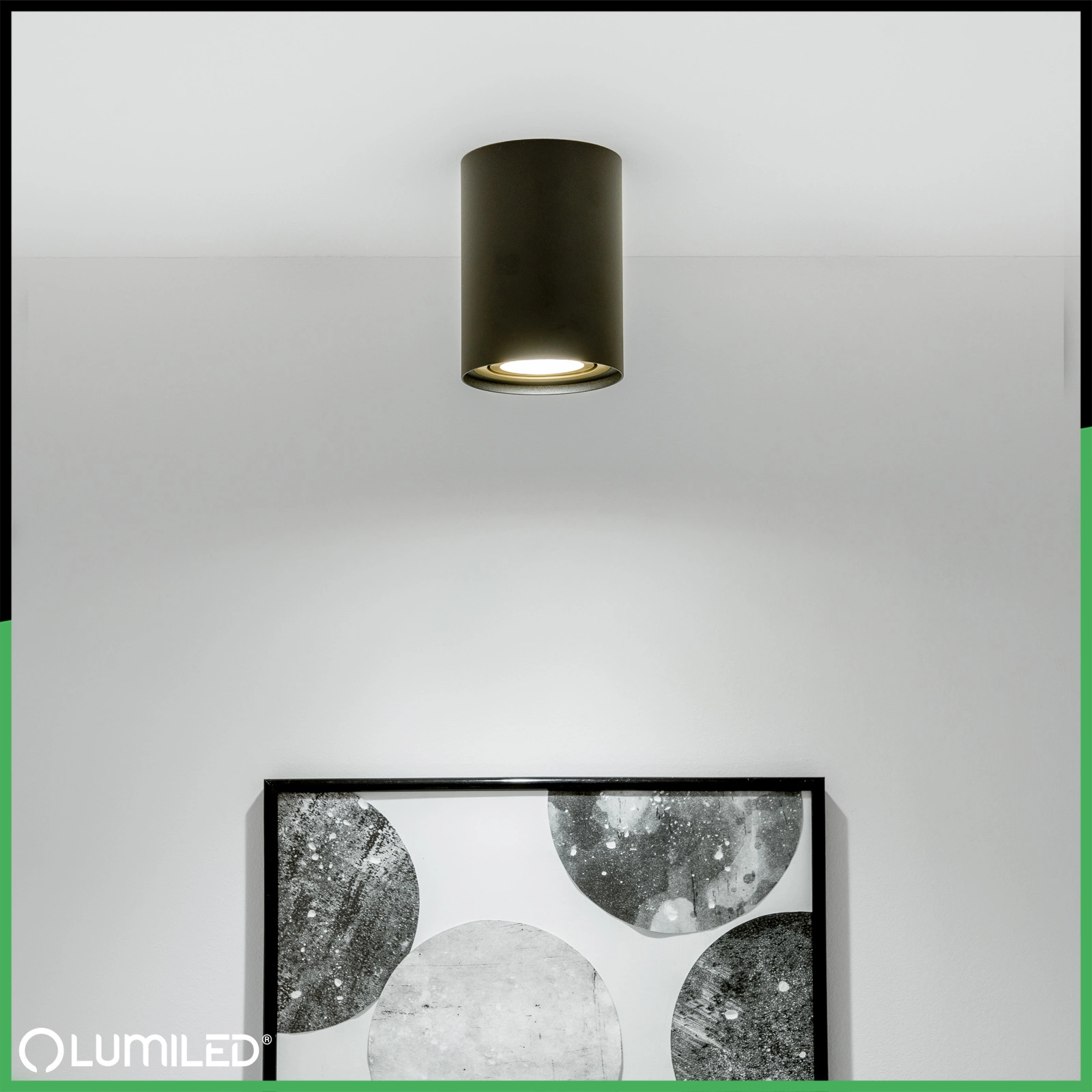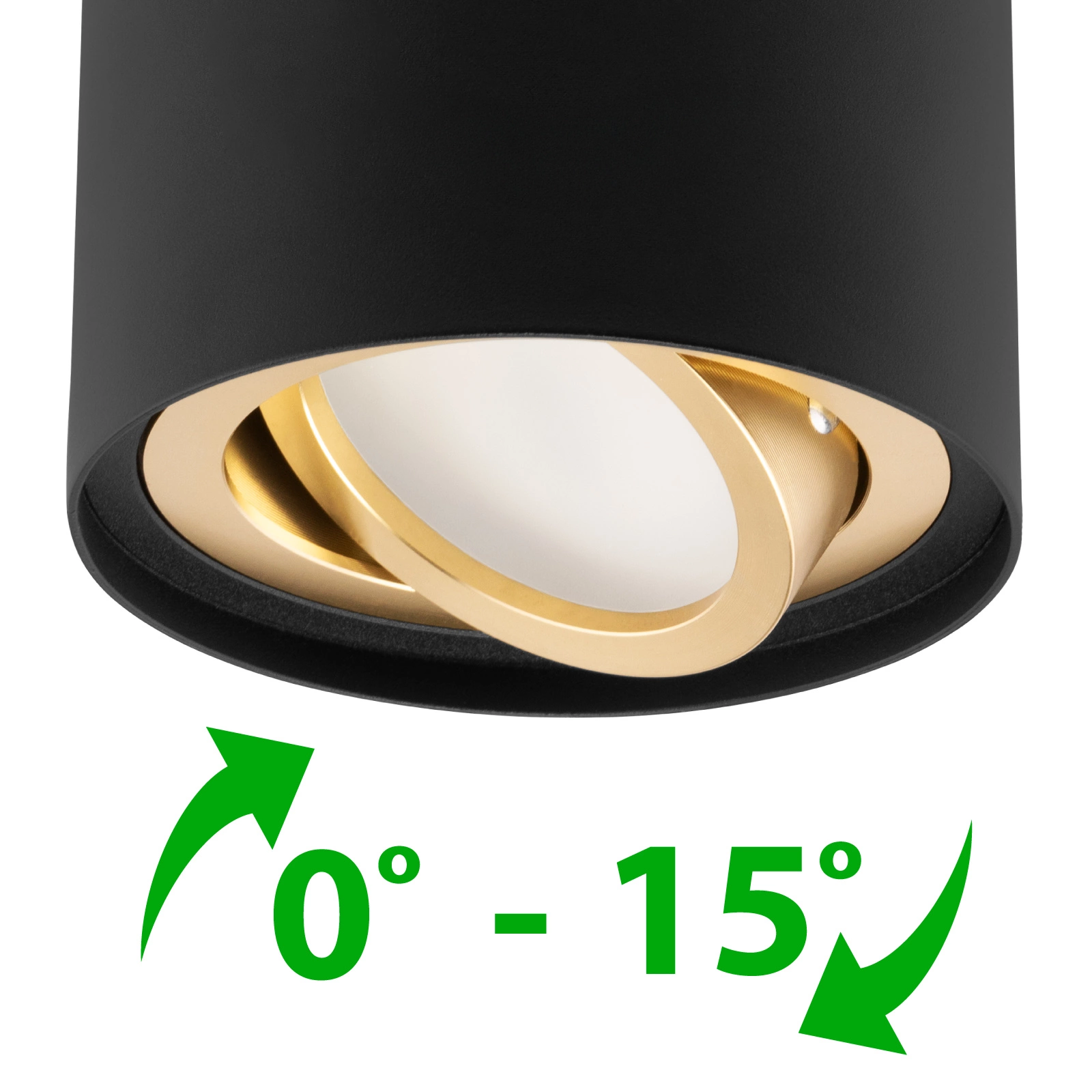 Kruhové pohyblivé svítidlo pro povrchovou montáž v černé a zlaté sérii AMAT L s výškou 115 mm značky LUMILED. Jedná se o moderní zdroj světla. Halogenové svítidlo bude poutavou dekorací i dokonalým doplňkem moderních nebo minimalistických interiérů, kterým dodá šarm a změní jejich vzhled.