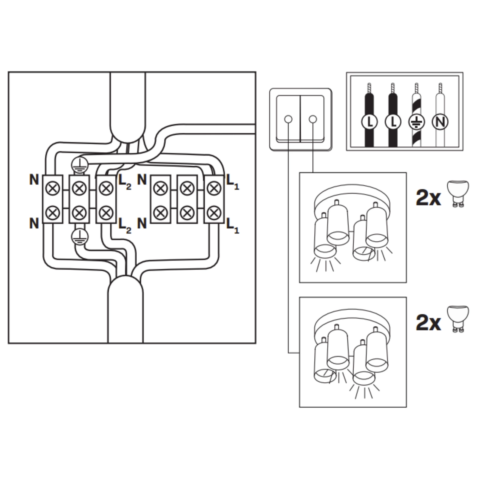 - Vyměnitelný světelný zdroj - Možnost montáže různých světelných zdrojů GU10 s maximálním výkonem každého z nich 10 W umožňuje snadné přizpůsobení.