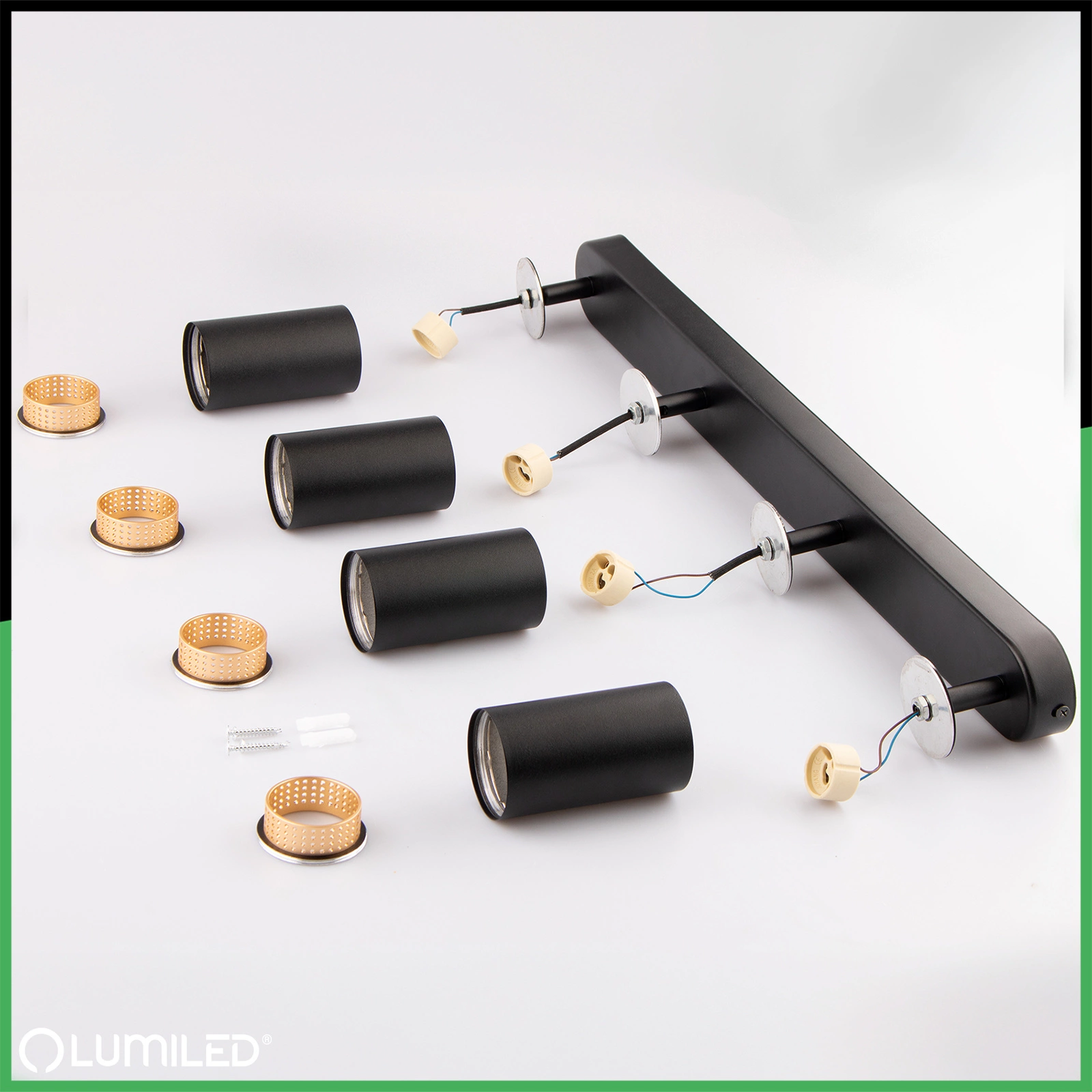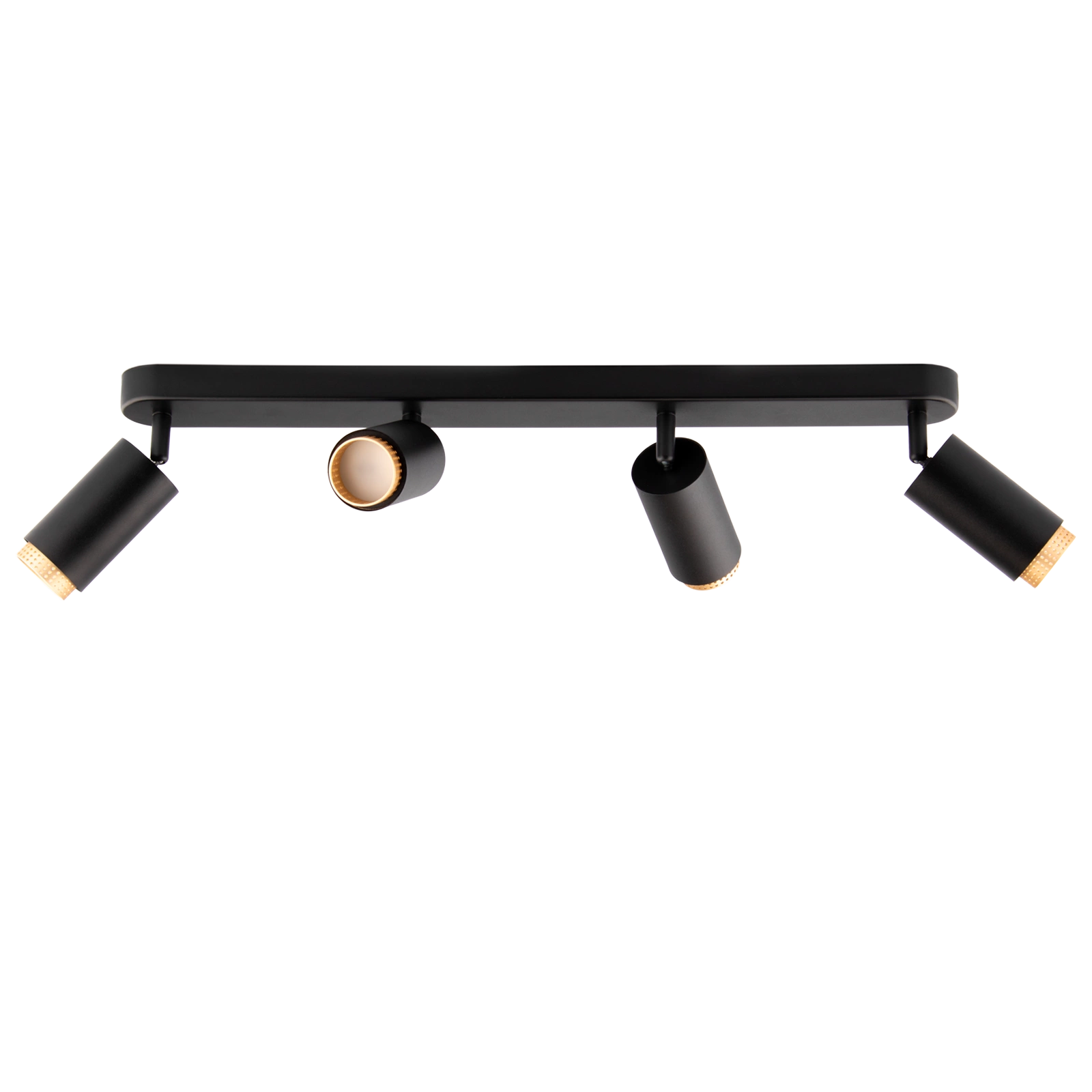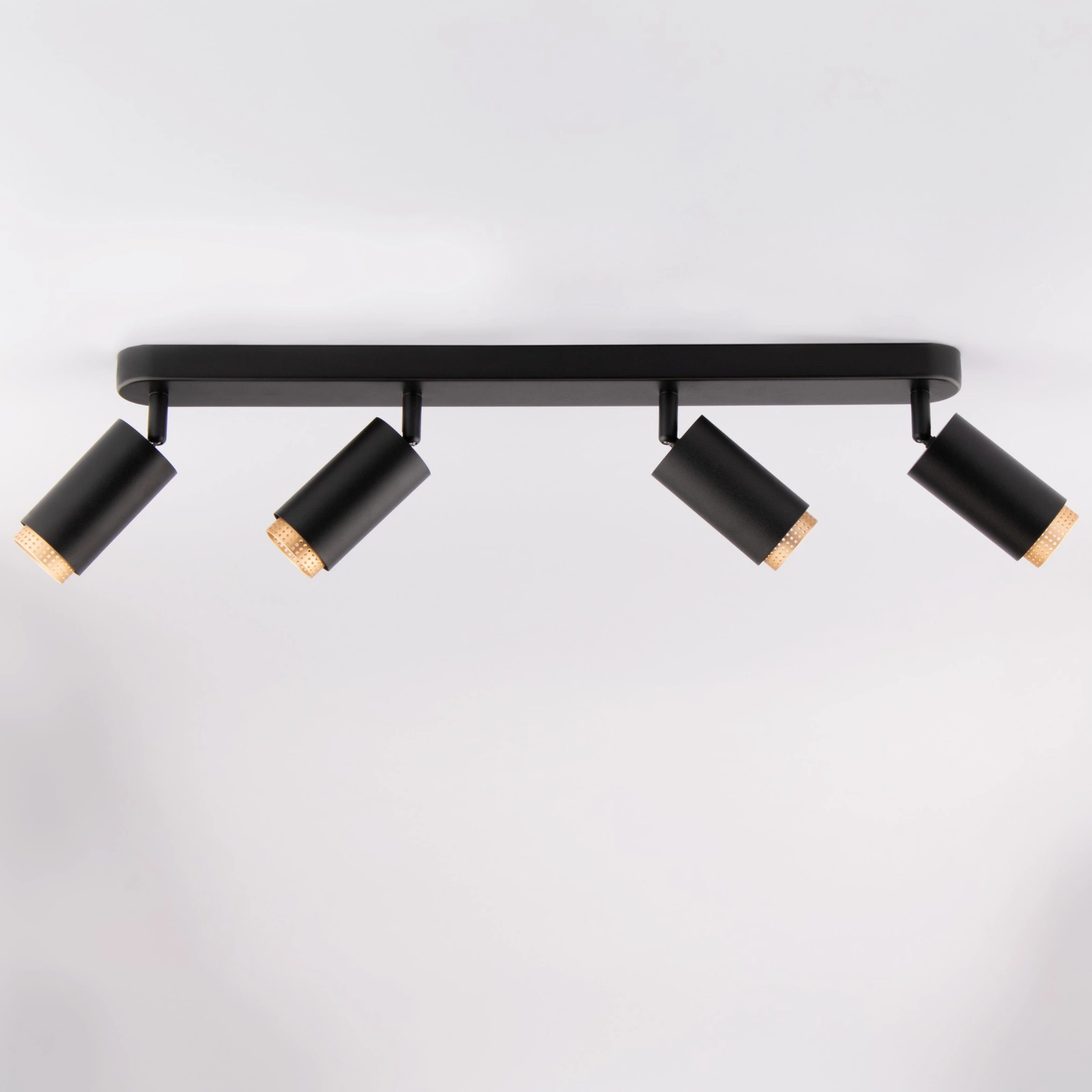 Svítidlo se 4 reflektory ze série ELIGIS od společnosti Lumiled v černé a zlaté barvě je elegantním a funkčním řešením pro moderní interiéry. Je vyroben z vysoce kvalitního hliníku, který kombinuje odolnost s estetickým vzhledem. Předložený model je vybaven objímkou žárovky GU10, umístěný v stylový zlatý prvek lampy, což dodává lampě minimalistický a zároveň sofistikovaný charakter. Další výhodou lampy je, že ji lze osadit libovolnou žárovkou se závitem GU10 o maximálním příkonu 12 W.