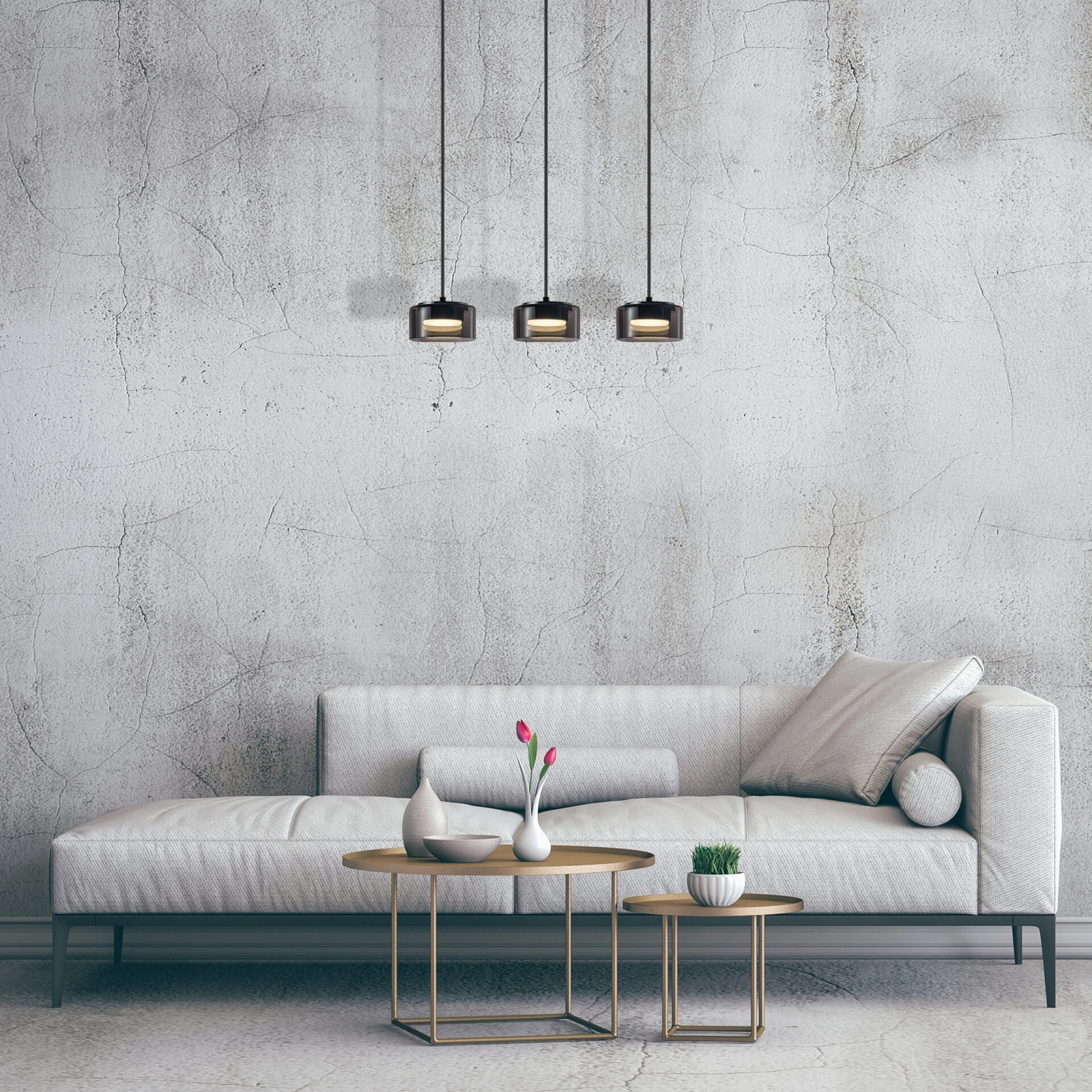 - Tři stínidla z kouřového skla: módní kouřové sklo vytváří jemný světelný efekt a dodává místnosti jedinečný charakter.