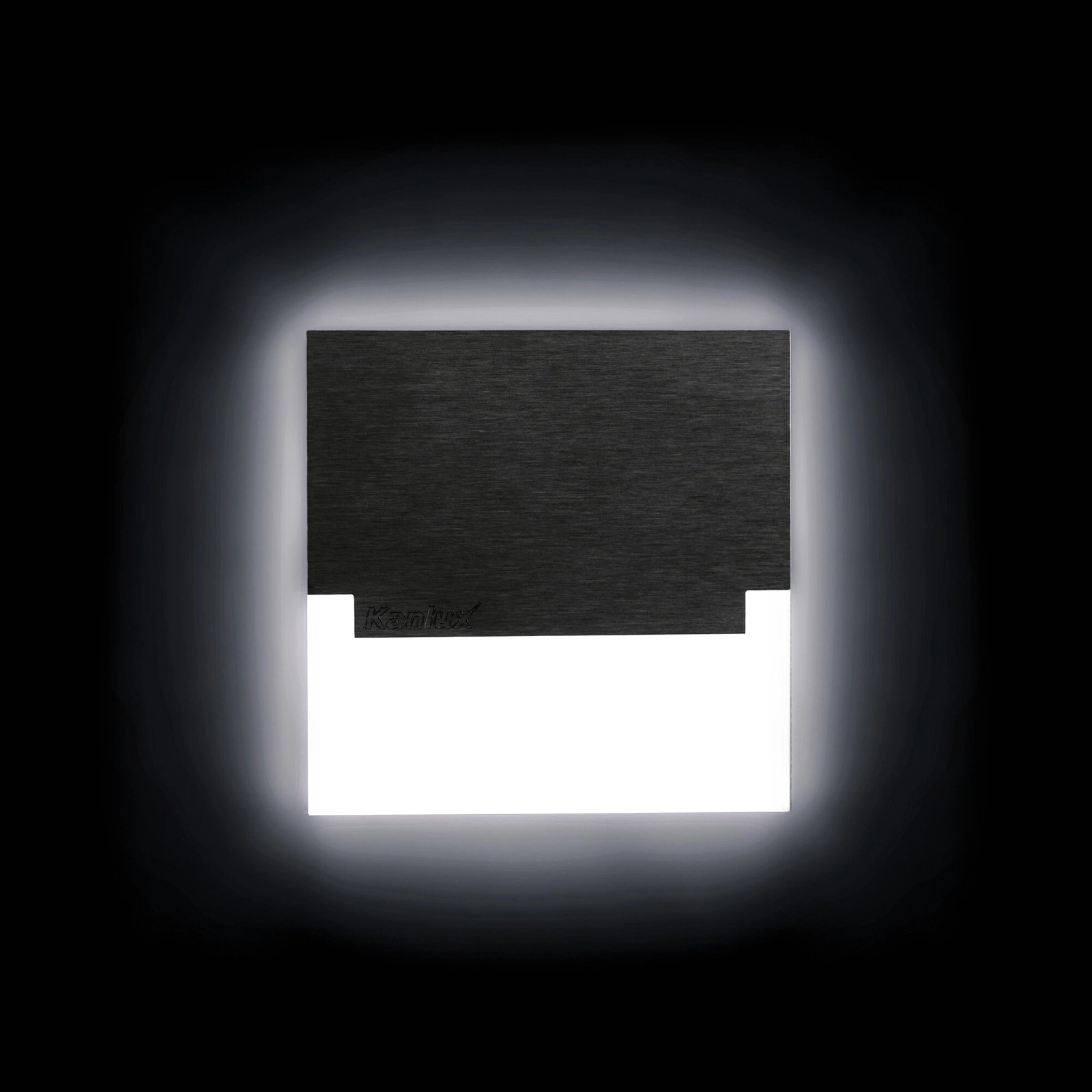 Schodišťové světlo LED 0,8W 14lm 4000K 12V neutrální bílá čtvercové čidlo pohybu a soumraku černé Sabik Kanlux