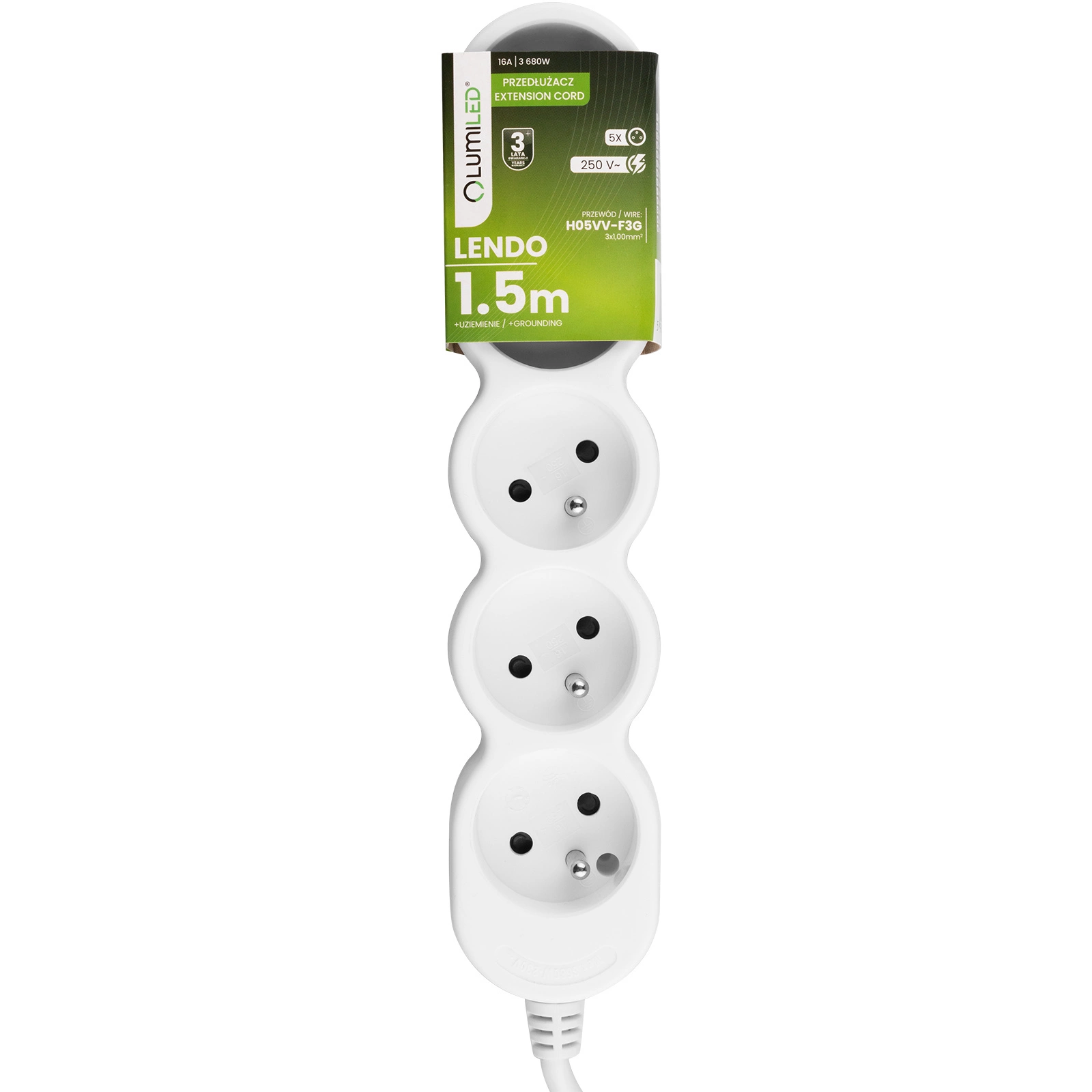 Síťový prodlužovací kabel s uzemněním 5 zásuvek 1,5 m bílý kabel Lendo Lumiled