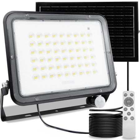Solární halogenový reflektor LED 200W Zahradní lampa 4000K IP65 PIR senzor pohybu + dálkové ovládání FULGOR LUMILED