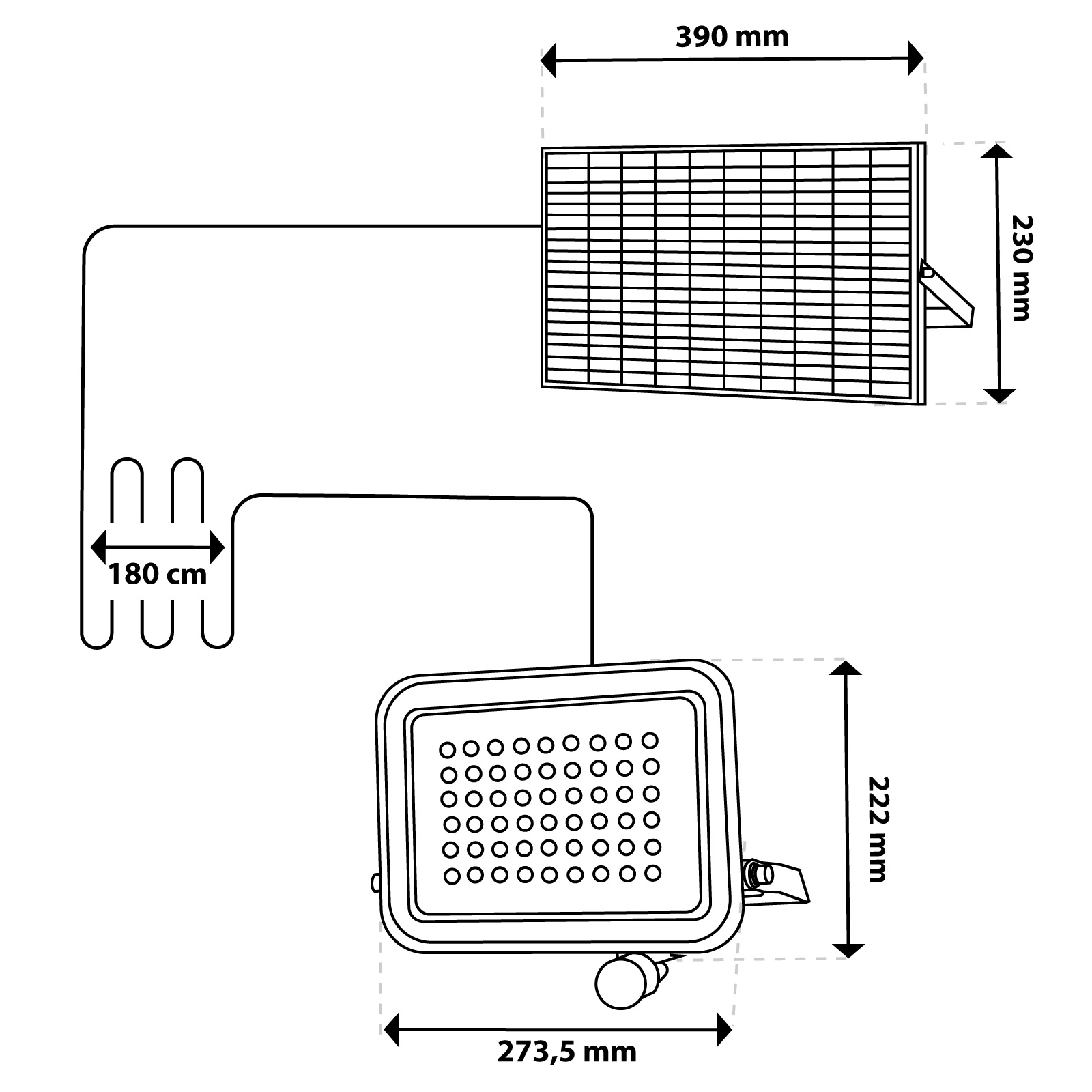 Nemusíte se obávat deště, sněhu ani prachu. Vysoké krytí IP65 znamená, že reflektor je odolný vůči nepříznivým povětrnostním podmínkám. Robustní kryt jej chrání před prachem a vodou, takže si můžete být jisti, že bude spolehlivě fungovat po mnoho sezón. Mezi panelem a světlometem je navíc vzduchotěsný konektor, takže světlo je plně chráněno proti vlhkosti a poškození.