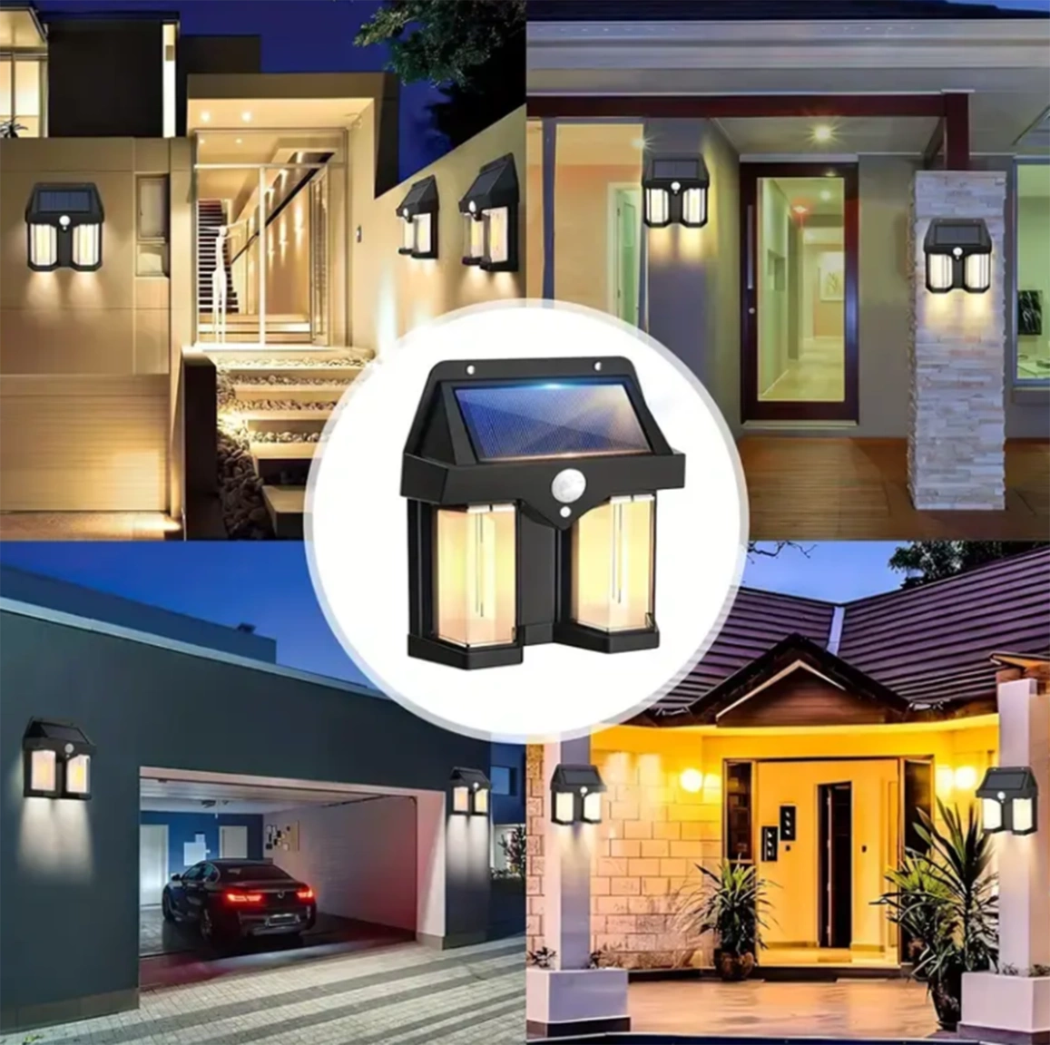 Solární nástěnné svítidlo LED Solární fasádní reflektor Senzor soumraku Černý