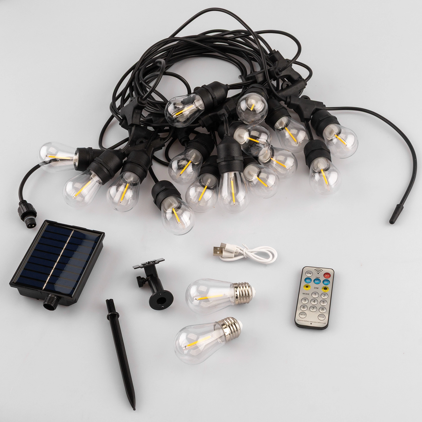 Solární zahradní girlanda 15x LED Dekorativní žárovky 10m + Dálkové ovládání IP65 2700K teplá bílá SOLLIS LUMILED