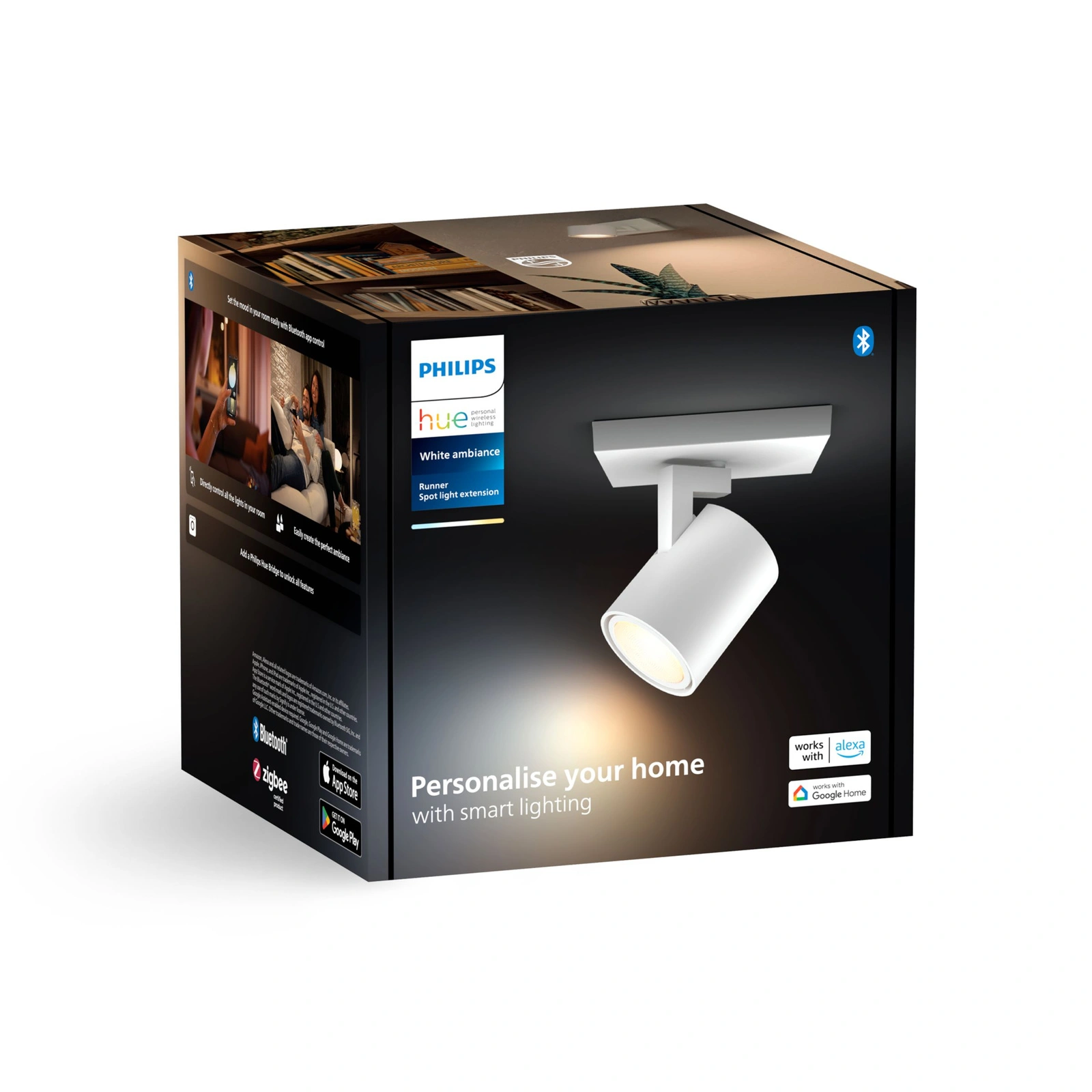Spotlight HUE LED Runner uznávaný a respektovaný v oboru osvětlení Philips. Moderní nástěnné svítidlo vybavené LED žárovkou s paticí GU10 o příkonu 4,2 W a velmi účinným světelným tokem 400 lm. Vyzařuje příjemnou a relaxační světlo s nastavitelnou teplotou barev od příjemně teplých přes neutrální až po studené, s nimiž můžeme vytvořit správnou náladu pro každou příležitost. Díky svému stylovému krytu dokonale zapadne do domácího interiéru. Lampy HUE LED Runner může fungovat samostatně nebo jako součást systému chytrého osvětlení po připojení k můstku Hue Bridge. Snadné zapínání a vypínání světel, stmívání, rozjasňování a výběr ze čtyř různých světelných scén.