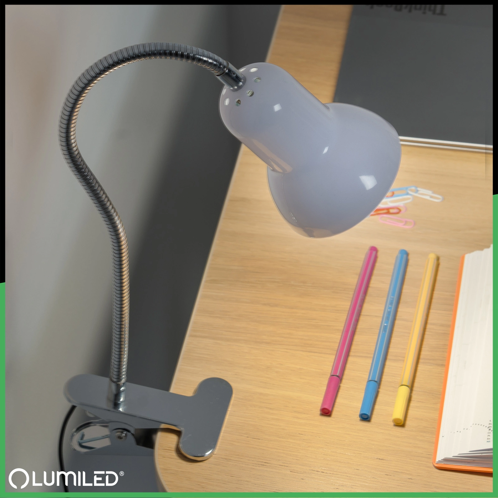 Stolní lampa navržená především s ohledem na nejmladší uživatele lze přizpůsobit jejich potřebám nastavením úhlu sklonu a natočení hlavy. Dítě si tak může nastavit osvětlení podle svého pohodlí a lépe vidět na povrch stolu.