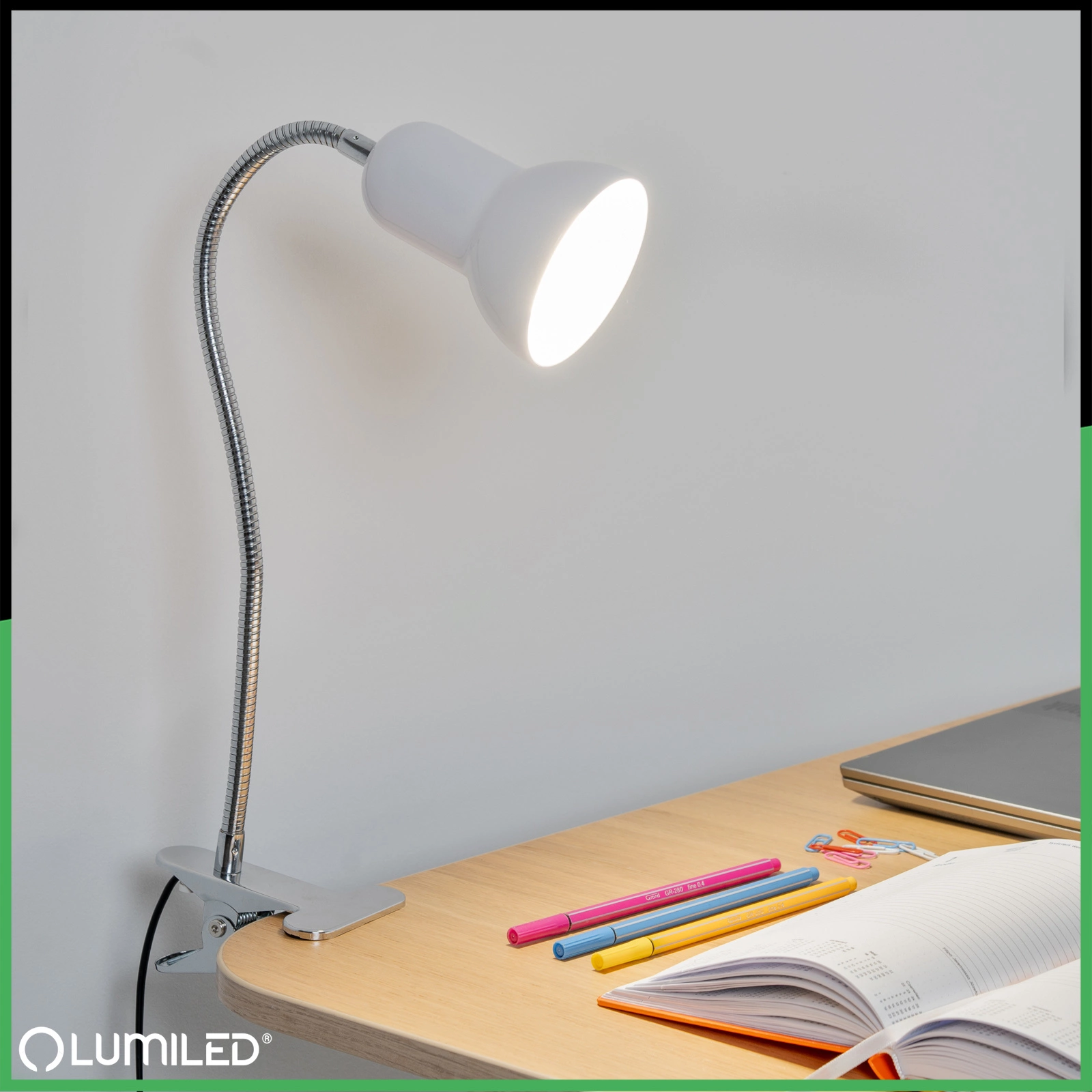 Bílá stolní lampa se stínidlem o průměru 9 cm je ideálním produktem pro každodenní použití ve vaší domácnosti. Nastavitelné rameno umožňuje možnost nastavit směr světla podle individuálních potřeb uživatel. Umožňuje nám lépe osvětlit místo, kde pracujeme, studujeme u stolu nebo slouží jako noční lampička v dětském pokoji. Kromě toho je vybaven speciálním klipem, který umožňuje snadné připevnění na okraj desky stolu nebo police, což šetří místo na stole a umožňuje přesné umístění světelného zdroje. Klip na konci svítilny zajišťuje stabilní držení, takže je ideální pro práci, čtení nebo jiné přesné úkoly.