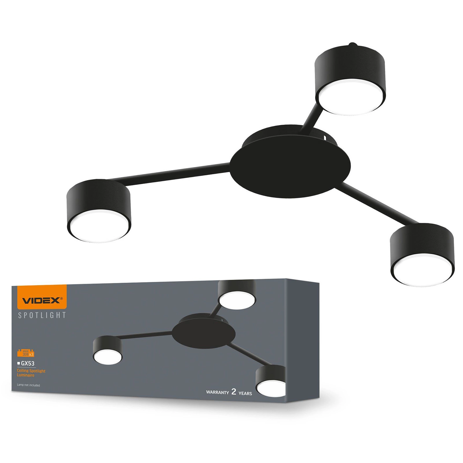 Představujeme moderní stropní svítidlo Videx, které se dokonale hodí do každého moderního interiéru. Svítidlo má tři otvory pro LED žárovky GX53, které zajišťují jasné a rovnoměrné osvětlení. Má elegantní černou povrchovou úpravu, která dodává interiéru styl a modernost.