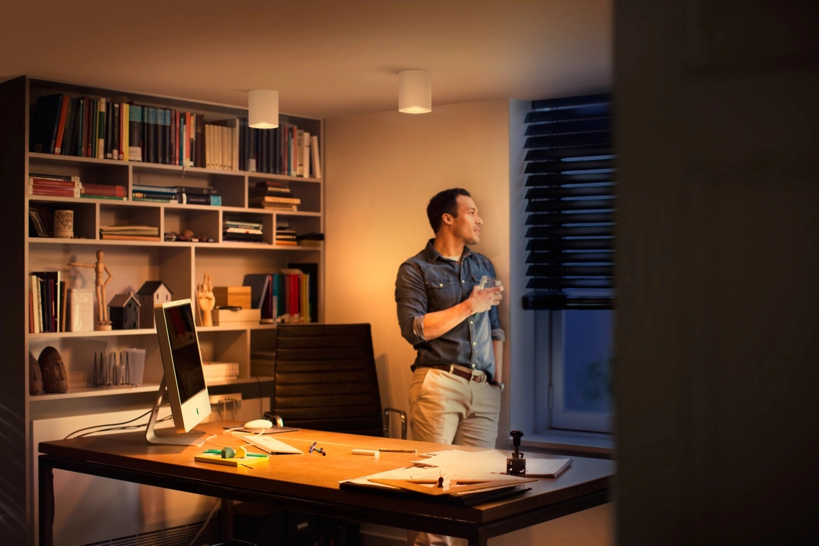 Čtyři uspořádání osvětlení (energizující, podporující soustředění, čtení a polohovací) umožňují přizpůsobit osvětlení vašim každodenním úkolům a zpříjemnit si den. Dvě chladnější barvy bílého světla usnadňují ranní vstávání a soustředění, zatímco dvě teplejší barvy umožňují vychutnat si dobrou knihu a relaxovat po náročném dni.