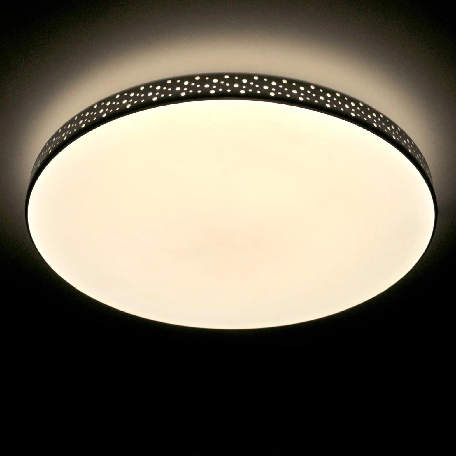 Stropní svítidlo model Moon je moderní LED plafón z vysoce kvalitních materiálů, který se vyznačuje moderním a módním designem. Svítidlo využívá vysoce účinné úsporné světelné zdroje LED s celkovým výkonem 18W i neutrální barva světla (4000K). LED diody jsou ukryty pod mléčným perforovaným difuzorem, který vrhá jemné odlesky a poskytuje rovnoměrně rozptýlené světlo, čímž eliminuje negativní efekt oslnění. Nedochází k efektu bodového světla ani k zatemnění jedné strany (jako je tomu u tradičních plafonů se šroubovací žárovkou) Díky zvýšenému krytí IP44 lze plafon úspěšně používat v koupelnách a místnostech se zvýšenou vlhkostí. Díky robustní a osvědčené konstrukci je prezentovaný plafon ideální nejen pro domy a byty, ale také jako vynikající volba pro hotely a jiné komerční prostory apod. Kromě toho toto lehké plastové svítidlo lze díky jeho nízké hmotnosti a plochému tvaru namontovat téměř na jakýkoli povrch.