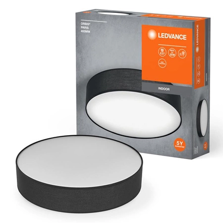 Stropní svítidlo Orbis Ledvance Plafond Surface Mounted E27 Black 40 cm je elegantní a funkční řešení osvětlení pro každý interiér. Je vyrobeno z odolných materiálů, jako je ocel, tkanina a polyvinylchlorid (PVC), a zaručuje tak dlouhou životnost. Černá barva dodává svítidlu moderní nádech a díky povrchové montáži se dokonale hodí k různým designovým stylům.
