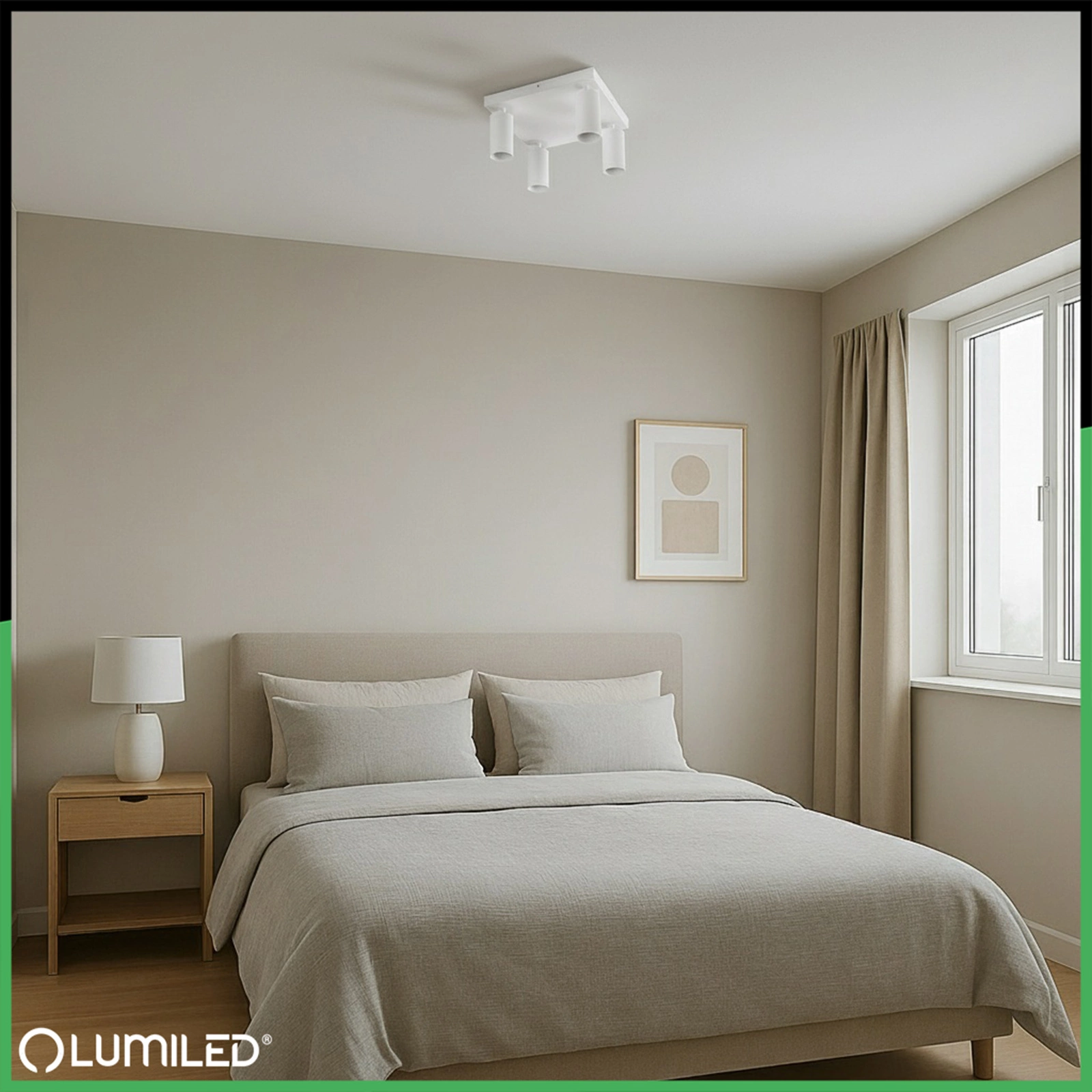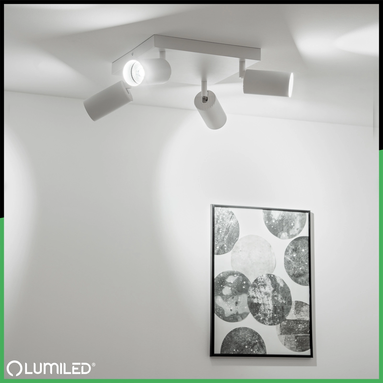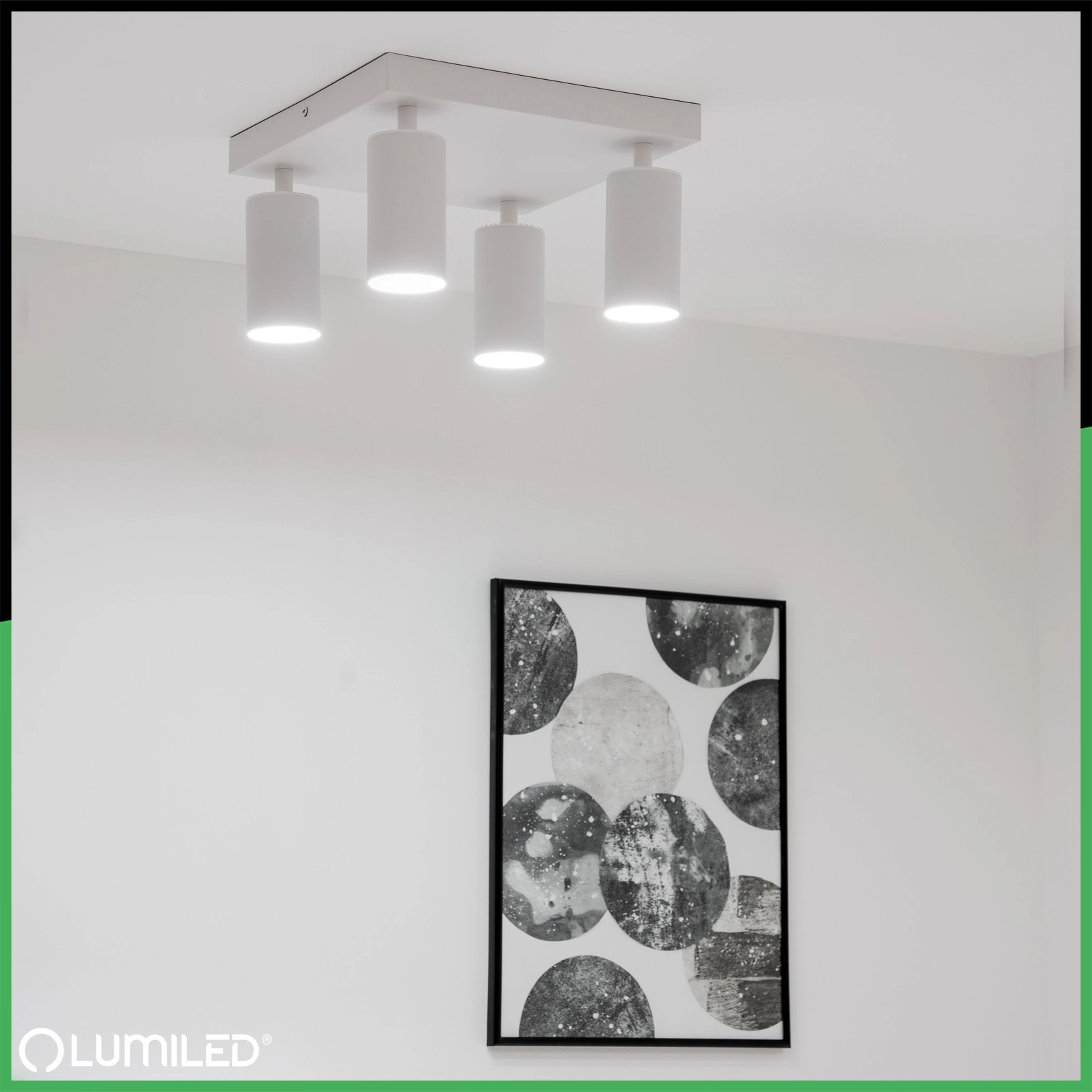 Stropní svítidlo, plafond s moderním a minimalistickým designem je dokonalým řešením pro jakýkoli typ interiéru. Reflektor v bílé barvě je vybaven čtyřmi paticemi pro žárovky GU10 která umožňuje používat jak klasické, tak úsporné LED žárovky. Nastavitelný úhel dopadu světla umožňuje přesné osvětlení vybraných míst v místnosti. Díky jednoduchému designu a decentní matné povrchové úpravě se lampa hodí do moderního, skandinávského nebo loftového stylu. Je ideální pro zvýraznění obrazů, polic nebo dekorativních předmětů a může také sloužit jako větší osvětlovací systém.