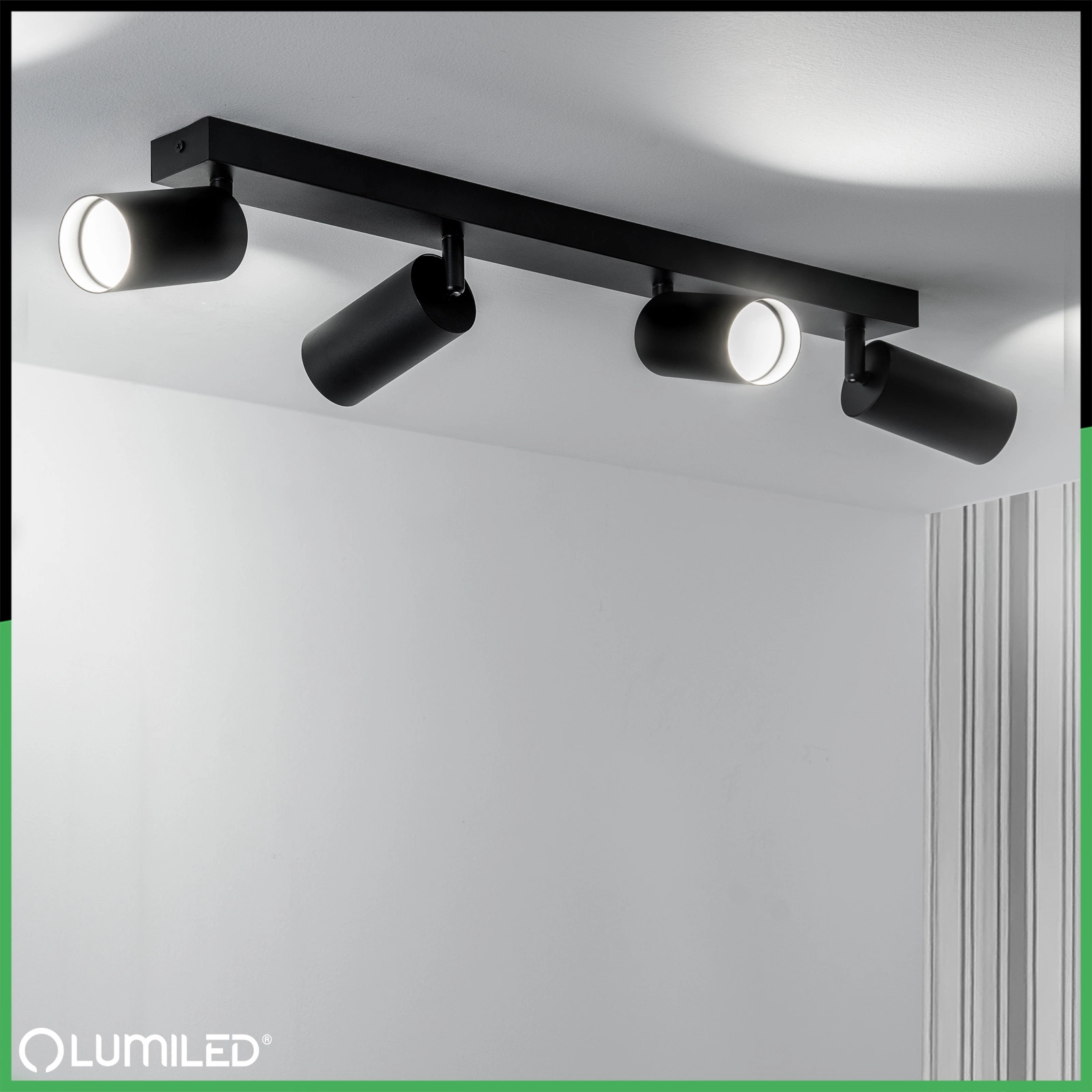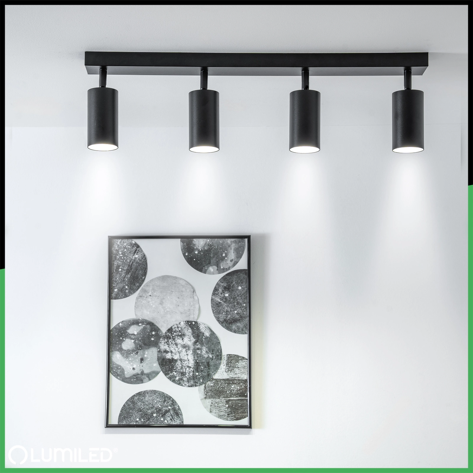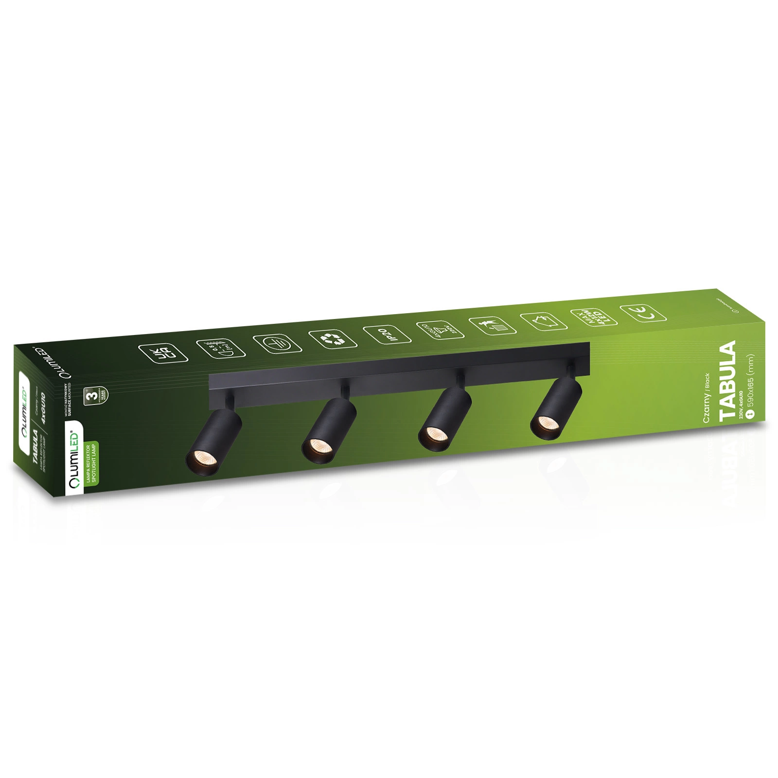 Stropní svítidlo ve tvaru trubice s moderním a minimalistickým designem je dokonalým řešením pro jakýkoli typ interiéru. Reflektor v černé barvě byl vybaven čtyřmi paticemi pro žárovku GU10, které umožňují použití jak tradičních, tak úsporných LED žárovek. Nastavitelný úhel dopadu světla umožňuje přesné osvětlení vybraných míst v místnosti. Díky jednoduchému designu a decentní matné povrchové úpravě se lampa skvěle hodí do moderních, skandinávských nebo loftových stylových úprav. Je ideální pro zvýraznění obrazů, poliček nebo dekorativních předmětů a může fungovat i jako větší osvětlovací systém.