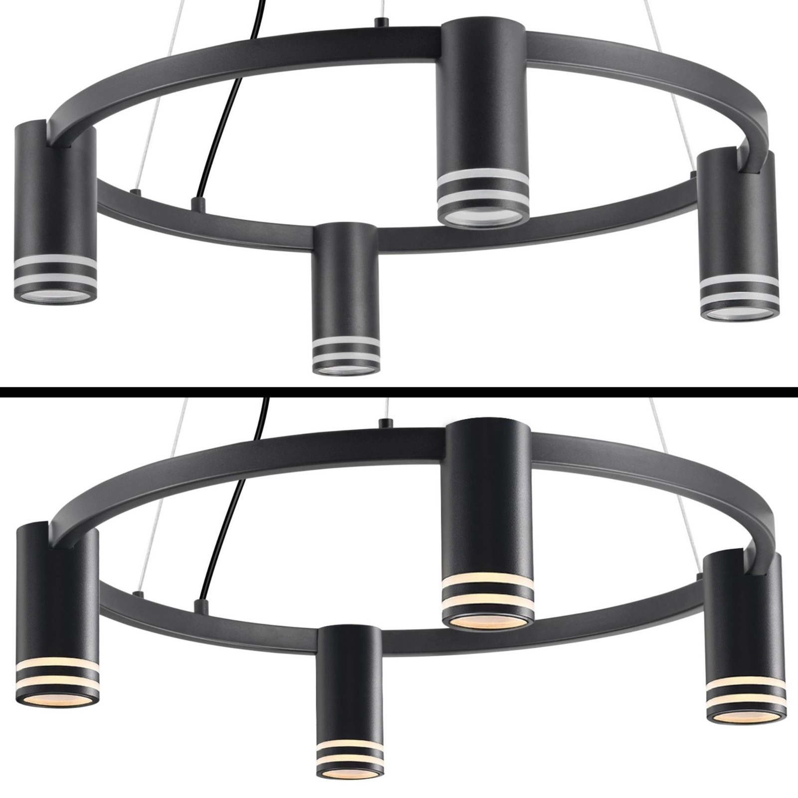 Objevte jedinečné závěsné stropní svítidlo ROMA od společnosti Sanico Goldlux, které vnese do vašeho interiéru nádech elegance a modernosti. Toto čtyřbodové svítidlo je vyrobeno z vysoce kvalitního hliníku ve stylové černé barvě, což zaručuje dlouhou životnost a estetický dojem. Jedním z jeho jedinečných dekorativních prvků jsou akrylové kroužky, které lze odšroubovat, což svítidlu dodává jedinečný designový vzhled. Díky vyměnitelným světelným zdrojům s paticí GU10 máte plnou svobodu přizpůsobit osvětlení svým preferencím, pokud jde o výkon a barvu.