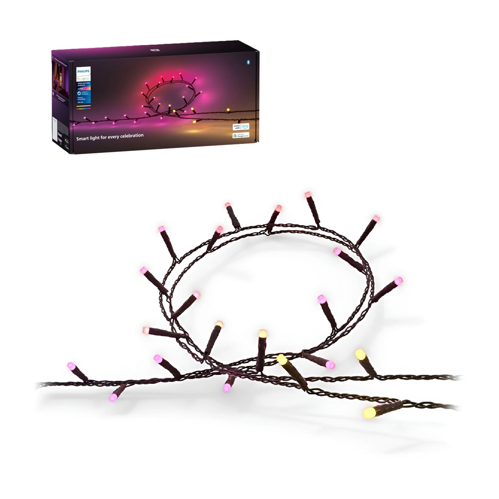 Pořádáte akci? Připravte si nezapomenutelný večer se světelným věncem, který může měnit barvy, stmívat se a rozjasňovat v rytmu vaší oblíbené hudby. Je vyžadován můstek Hue Bridge.