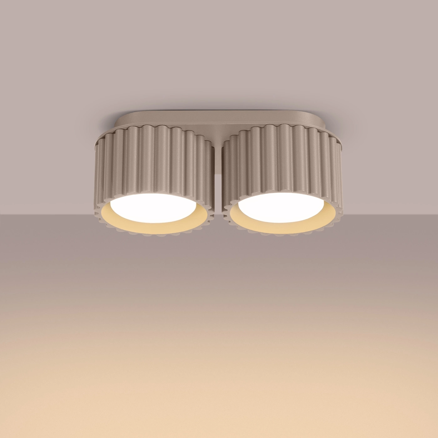 Objevte moderní styl s povrchovým svítidlem 2x GX53 z řady Aura od společnosti SOLLUX Lighting! Vyniká svým geometrickým tvarem a rýhovaným povrchem, který podtrhne svěží design vašeho interiéru. Díky své taupe barvě a minimalistickému stylu se skvěle hodí do moderních, skandinávských a minimalistických aranžmá. Ve svítidle najdete dva světelné body se šroubovací paticí GX53, každý o maximálním příkonu 10 W, což vám dává možnost flexibilně zvolit ten správný světelný zdroj.