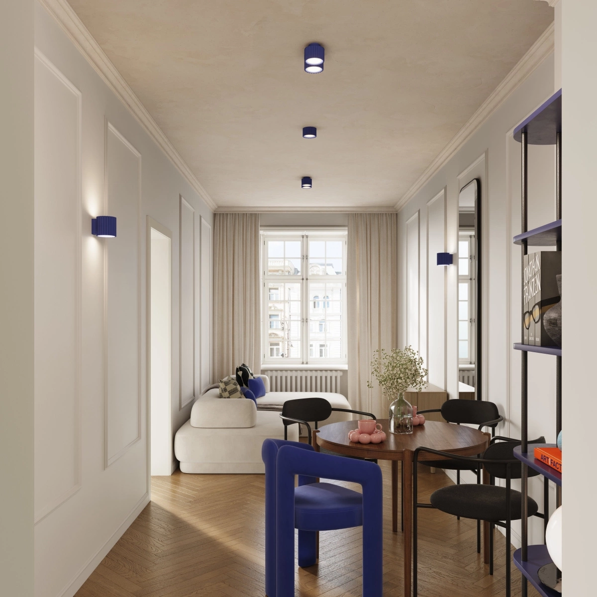 Posuňte svůj interiér na vyšší úroveň s nejnovějším přírůstkem řady Aura - svítidlem pro povrchovou montáž v jedinečné ultramarínově modré barvě. Toto moderní svítidlo od společnosti SOLLUX LIGHTING v sobě spojuje jedinečný styl a funkčnost. Díky svému geometrickému tvaru a rýhovanému povrchu svítidlo upoutá pozornost a obohatí váš prostor o minimalistický design. Skvěle se bude hodit do obývacího pokoje, ložnice, jídelny, kuchyně, a dokonce i na chodbu, kde dodá místnosti svěžest a eleganci.