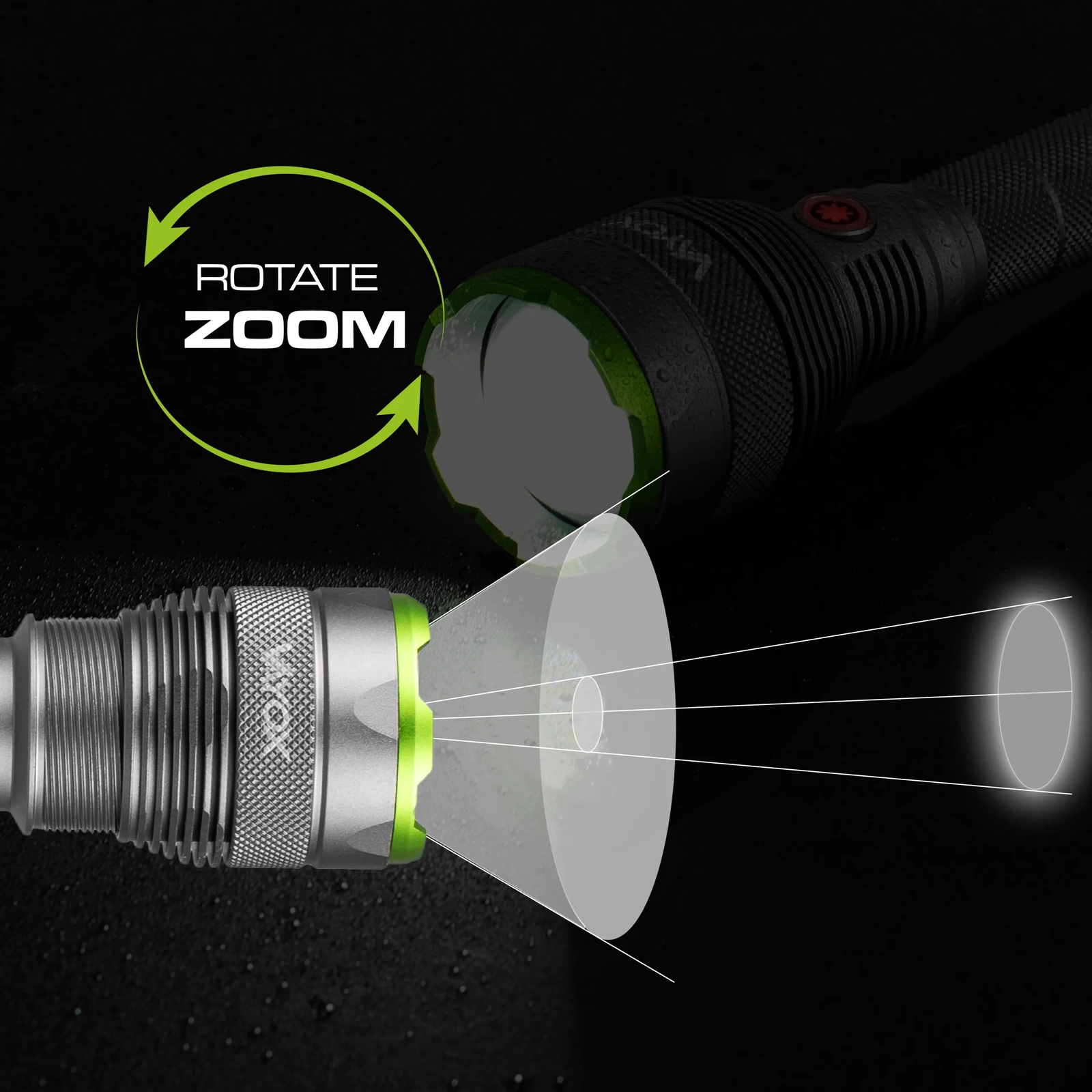 Svítilna má funkci zoomu, která umožňuje nastavit šířku světelného paprsku. Podle svých potřeb si můžete vybrat rozptýlené světlo, které je ideální pro osvětlení širokých ploch, nebo zaostřené světlo, které je ideální pro přesné osvětlení objektů ve větší vzdálenosti.