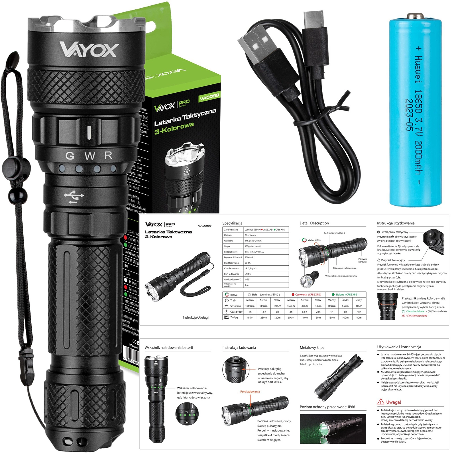 Svítilna VA0099 je vybavena 1 světlem, jehož světelný tok poskytuje výkon 1500 lumenů, proto funguje velmi dobře v mnoha situacích. Jedná se o dobrý model m.na adrese. pro kutily (mohou využít možnost postavit si baterku) nebo pro lidi, kteří rádi chodí na večerní procházky. Užitečné i doma při nečekaném výpadku proudu.