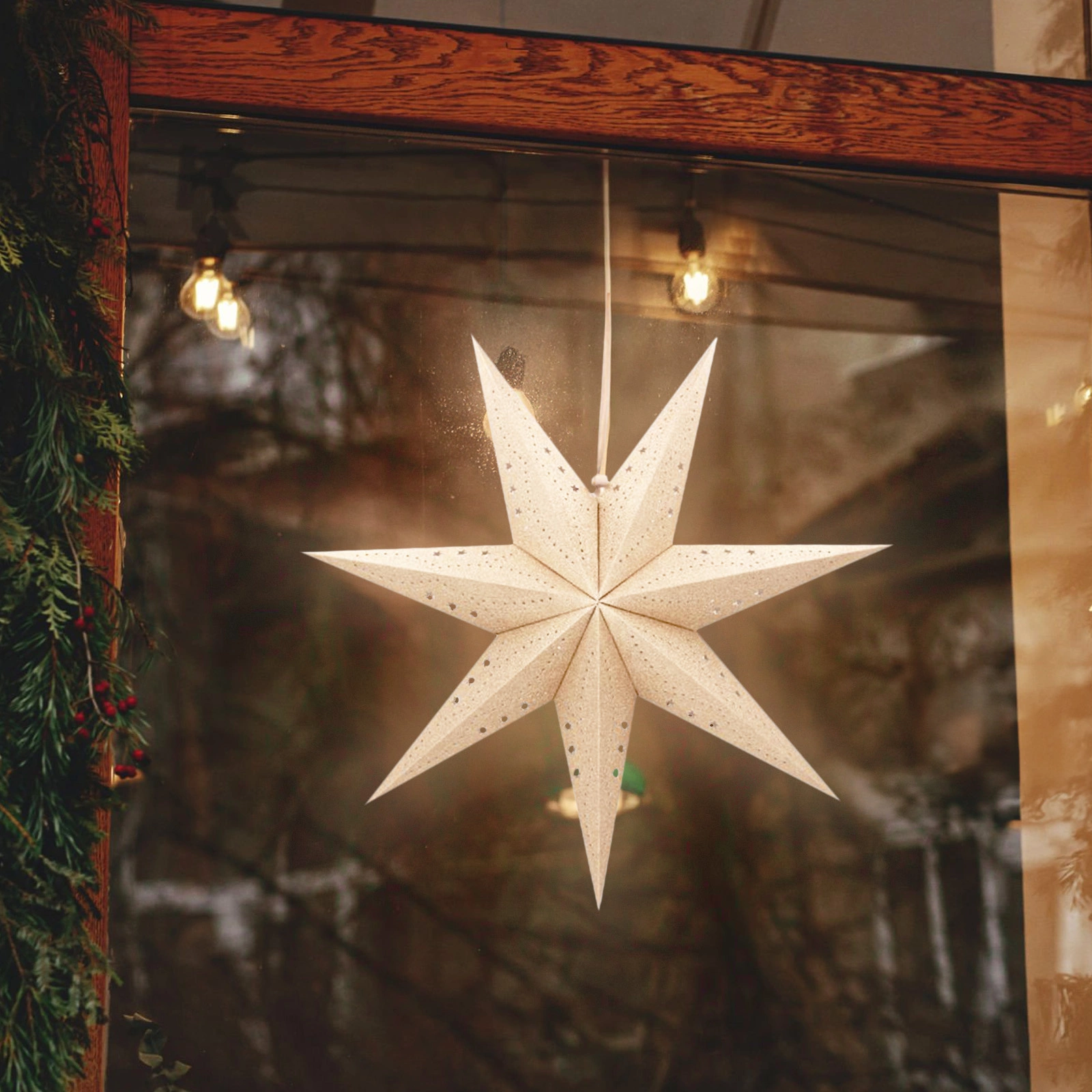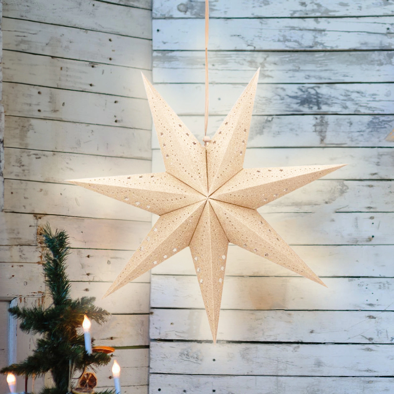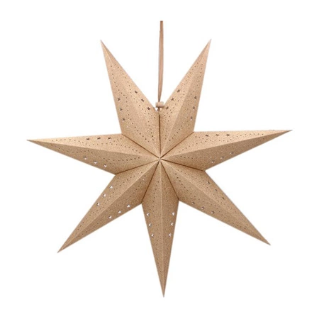 Papírová dekorativní hvězda s hladkým zlatým povrchem se vyznačuje elegancí a jednoduchostí. Je vytvořena z vysoce kvalitních materiálů a její jemná struktura vnáší do interiéru jemný a stylový nádech. Díky zlaté barvě hvězdy se skvěle hodí k různým designovým stylům, např. modernímu, skandinávskému nebo rustikálnímu. Představený model o průměru 60 cm se snadno stane hlavní ozdobou každého interiéru. Lze jej zavěsit do okna, na zeď nebo ke stropu - upoutá pozornost kdekoli.