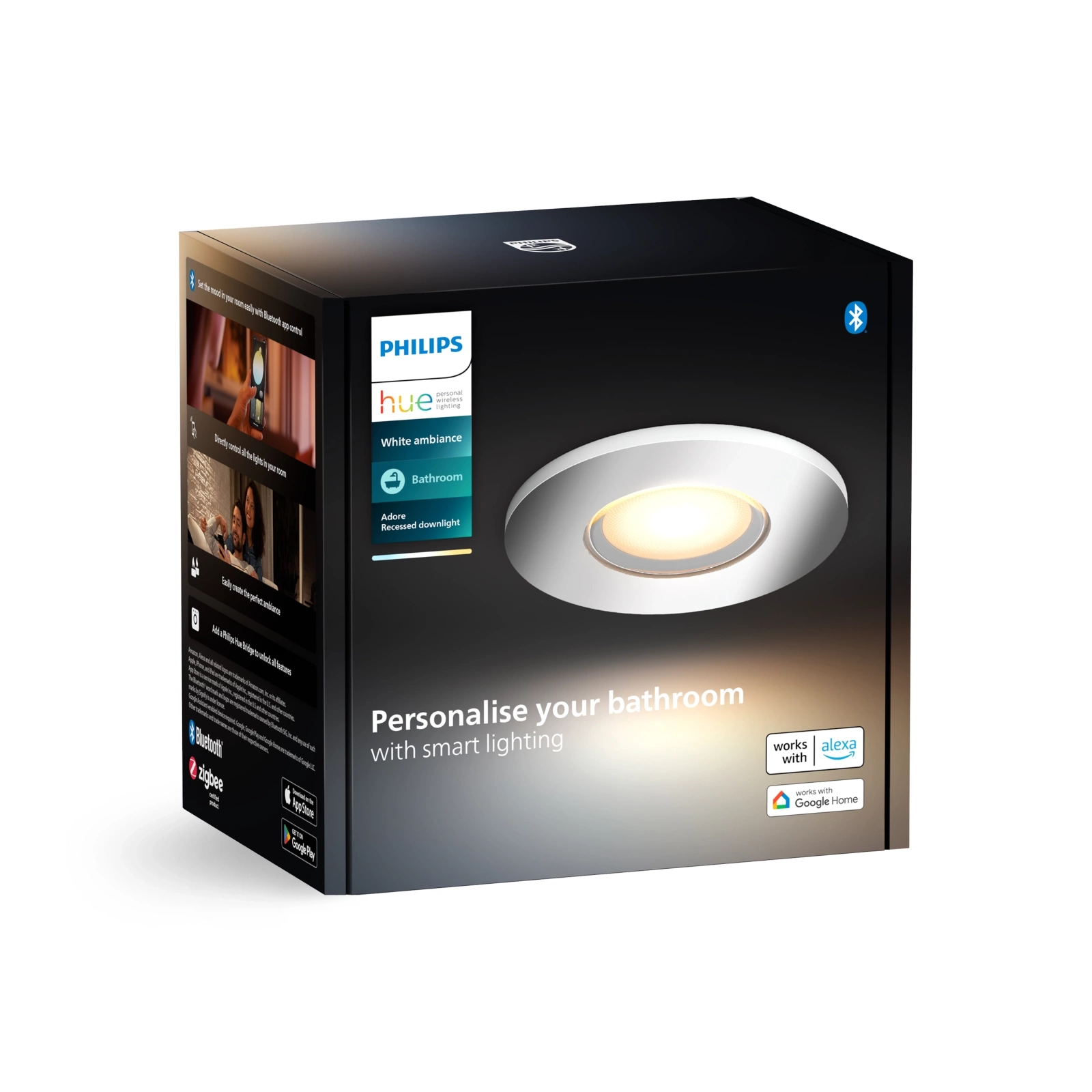 Objevte novou kvalitu osvětlení s inteligentním svítidlem Philips Hue Adore LED pro zápustnou montáž, které je ideální do koupelen a všech moderních interiérů. Je vybaveno příkonem 4,2 W, generuje působivý světelný tok 400 lm a má světelnou účinnost až 95,3 lm/W. Tento výrobek poskytuje nejen vynikající osvětlení, ale také rozmanitost díky variabilní barvě světla 2200-6500 K. Přizpůsobte atmosféru svým potřebám, ať už hledáte relaxační světlo do vany nebo intenzivní osvětlení při ranní toaletě.