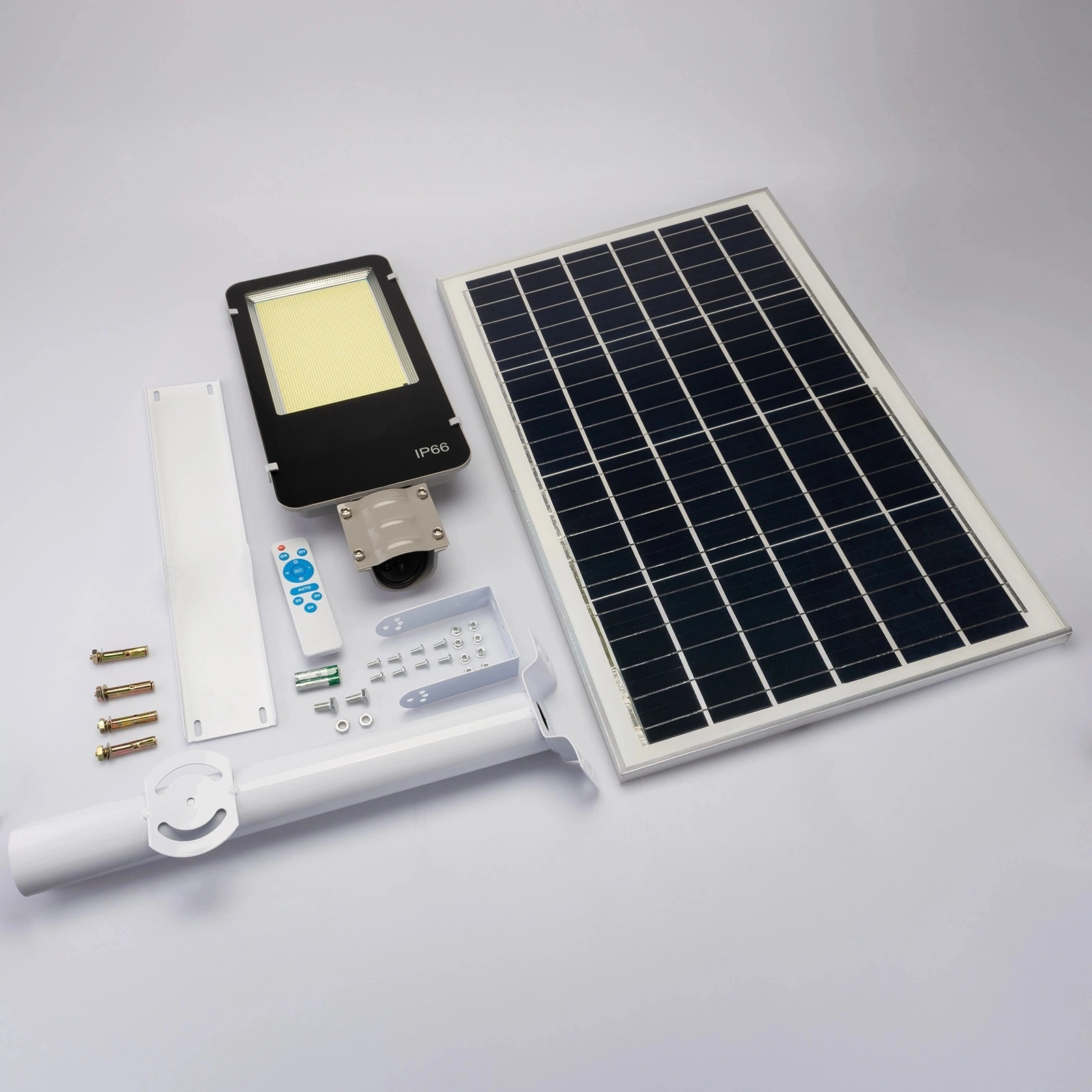 Výkonná 2000W solární pouliční lampa LED je ideálním osvětlením pro velké prostory, jako jsou ulice, dvory a zahrady. 1 200 LED diod poskytuje jas až 60 000 lumenů. Velký solární panel s nastavitelnou velikostí se rychle nabíjí a je odolný proti povětrnostním vlivům (IP66).