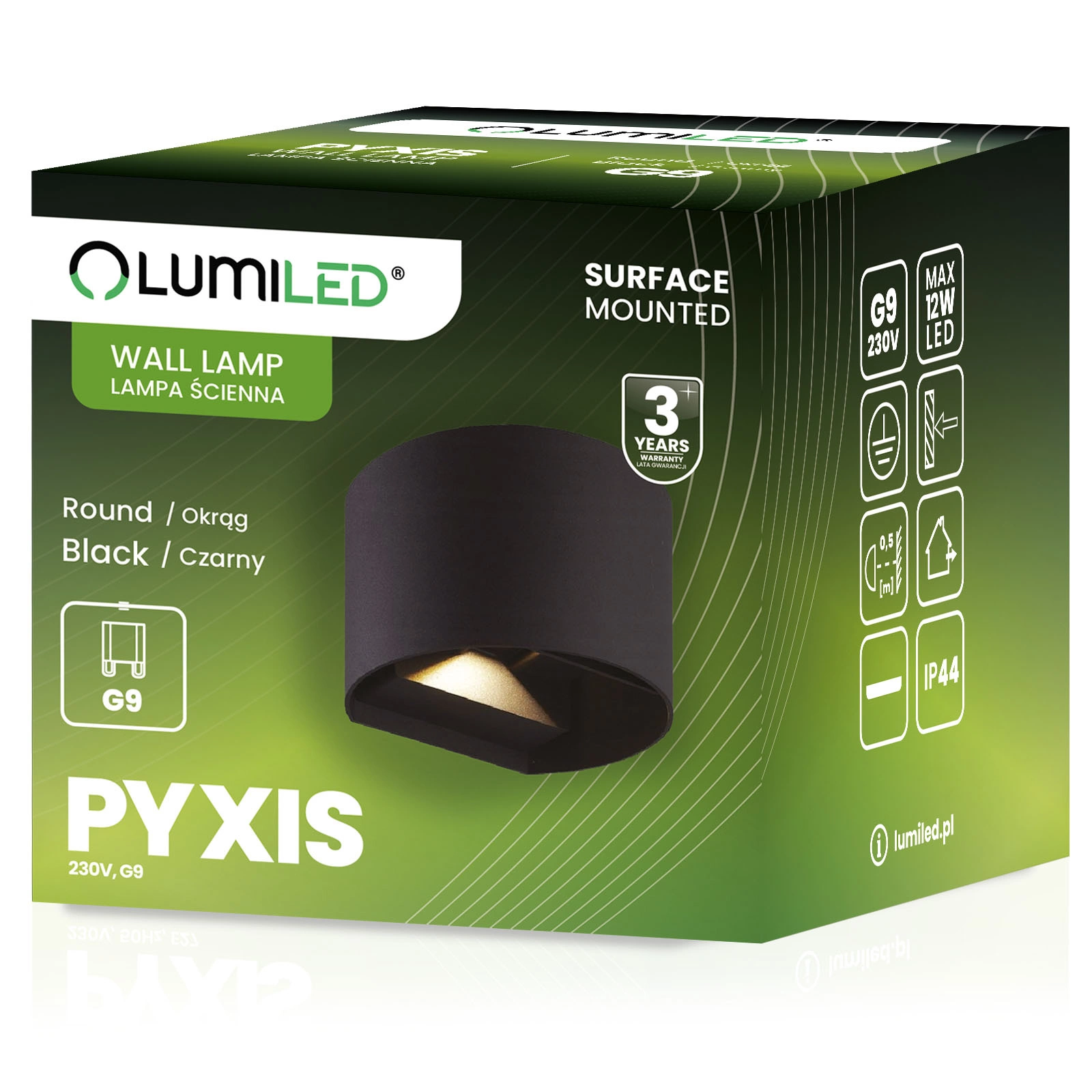 Zahradní nástěnné svítidlo v černé barvě z řady PYXIS od společnosti LUMILED se vyznačuje především moderním designem a bezproblémovou instalací. Svítidlo představuje elegantní a praktické osvětlení, ideální pro použití mimo dům. Je určeno pro povrchovou montáž na fasády budov.