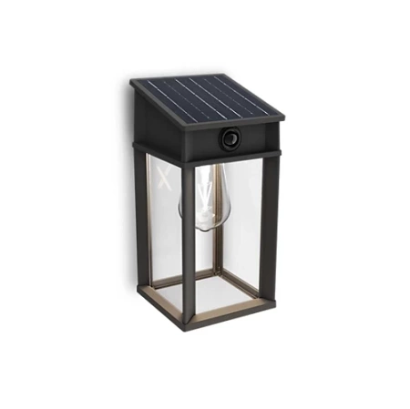 Zahradní nástěnná lampa Solární venkovní fasádní LED 3,2W 470lm 4000K IP44 s pohybovým a soumrakovým senzorem černá Geri Ultra Efficient Philips
