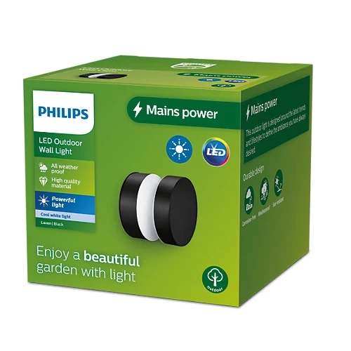 Venkovní nástěnné svítidlo Philips LED ze série LAVEN se vyznačuje především moderním designem a bezproblémovou instalací. LED lampa je elegantní a praktické světlo, ideální pro použití mimo domov. Určeno pro povrchovou montáž na fasády budov. S jasem 750 lumenů a studenou bílou barvou světla tato lampa usnadní pohyb po objektu ve večerních hodinách, nejenže ji rozjasní, ale také jí dodá kouzelnou atmosféru, která zpříjemní čas strávený v ní.