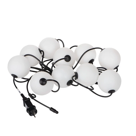 Kanlux Garden Girland je výrazná světelná dekorace ideální pro vytvoření atmosféry na zahradě, terase nebo balkoně. Šestimetrový řetěz je vybaven mléčnými stínidly, která poskytují rovnoměrné a příjemné světlo s barvou 2500K - ideální pro večerní relaxaci. Výrobek je odolný a snadno se montuje, takže je ideální volbou pro každou příležitost.