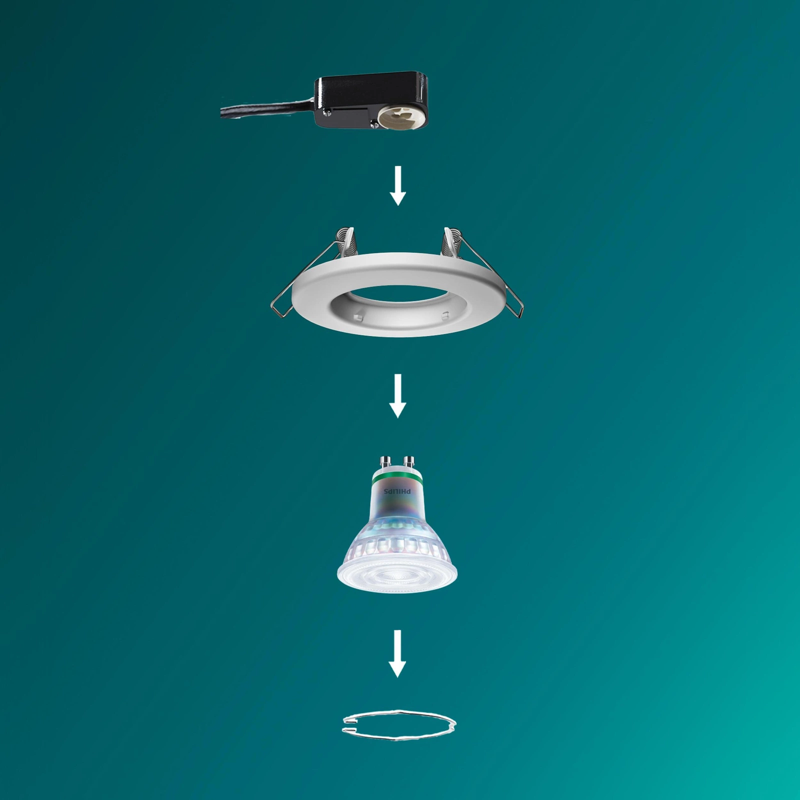 Výměna žárovky nebyla nikdy tak snadná. Díky důmyslné konstrukci svítidla to zvládnete sami bez demontáže a bez rizika poškození stropu. Jednoduše odstraňte montážní sponu, vyjměte použitou žárovku a vložte novou, poté sponu opět připevněte. Celý proces trvá jen chvíli a nevyžaduje žádné nářadí, což zaručuje každodenní pohodlí a komfort.