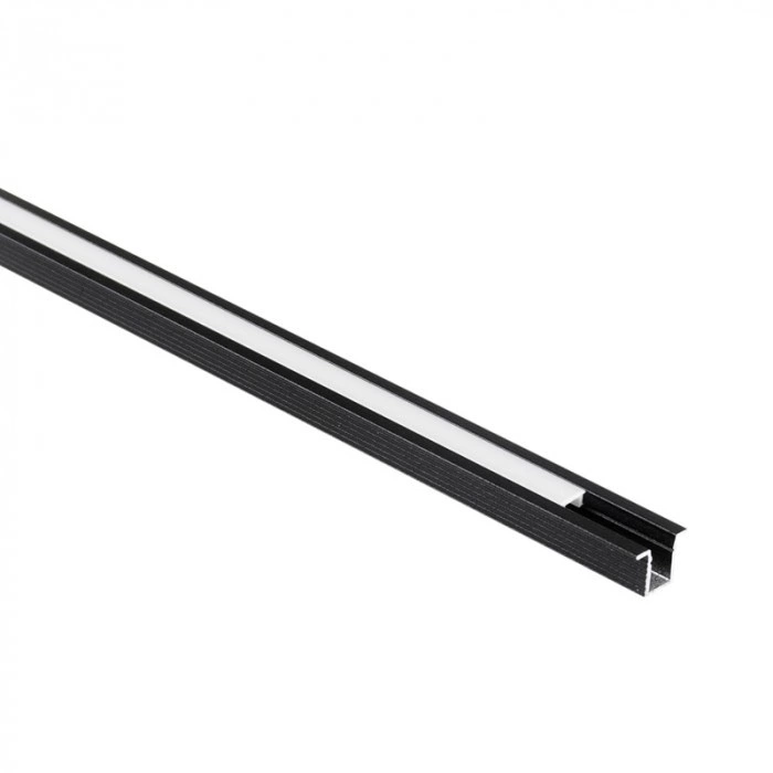 Zapuštěný hliníkový LED profil pod omítku černý 1m se stínítkem z mléčného skla pro LED pásky + krytky Ecolight PW series