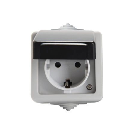 Zásuvka s ochranou kontaktů 16A Uzemnění IP54 Čtvercová šedá TEKNO Kanlux