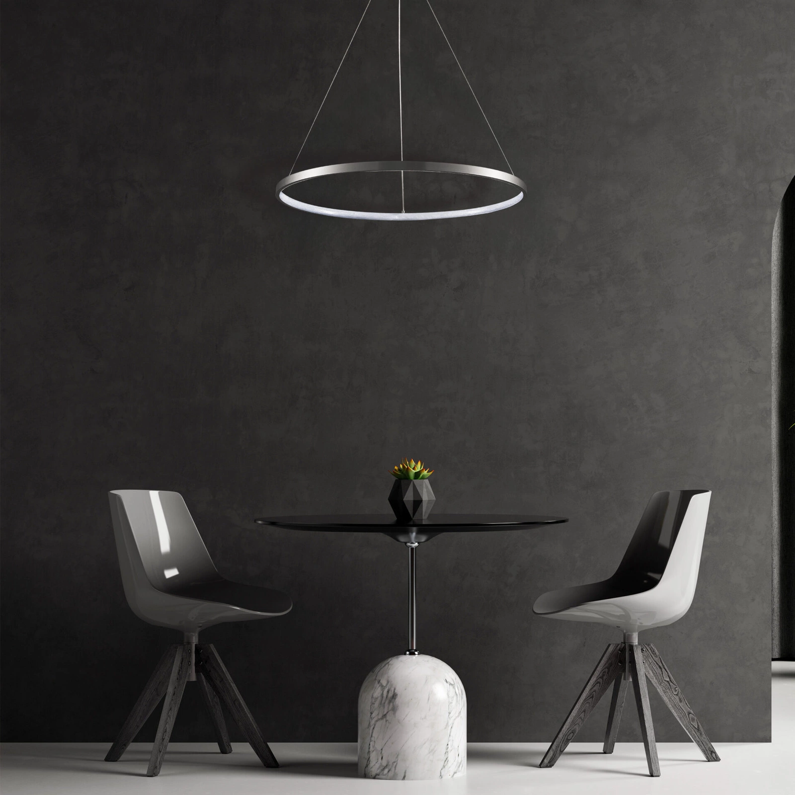 Objevte nový rozměr interiérového designu s naší závěsnou lampou LED LEA. Je to jedinečný návrh pro milovníky moderního designu - minimalistická forma a elegantní stříbrná barva se hodí do každého moderního, loftového nebo industriálního interiéru. Vysoce kvalitní hliník, ze kterého je lampa vyrobena, zajišťuje dlouhou životnost a odolnost proti poškození, což zaručuje dlouhodobou spokojenost s nákupem. Integrovaný světelný zdroj LED nabízí intenzivní a jasný světelný tok 2600 lm a zároveň poskytuje neutrální, příjemné světlo s barevnou teplotou 4000 K, které je ideální pro jakoukoli každodenní činnost.