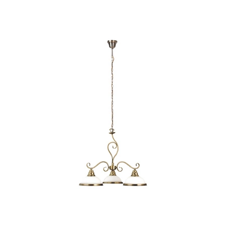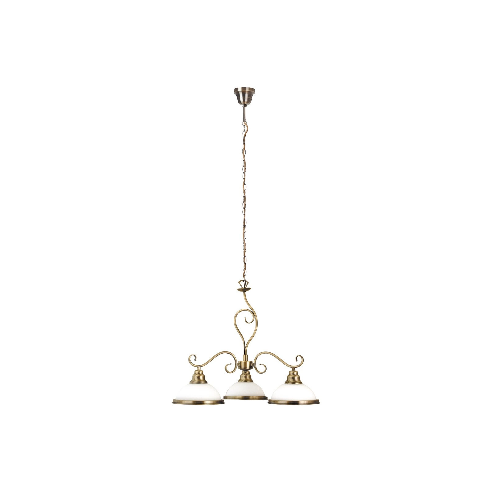 Jedinečné závěsné stropní svítidlo 3x E27 v klasickém stylu je ideální volbou pro ty, kteří si cení elegance a tradice. Je vyrobeno z odolného kovu a skla a má bronzovou povrchovou úpravu, která dokonale ladí s interiéry zařízenými v klasickém stylu. Průměr svítidla je 64 cm, což z něj činí skvělý ústřední bod v obývacím pokoji, jídelně nebo ložnici.