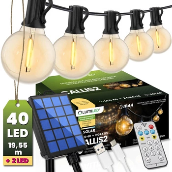 Dočasně nedostupnéSolar Garden Girland 40x LED okrasné koule 19,55m 2700K teplá bílá + dálkové ovládání CALLIS2 LUMILED