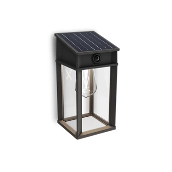 Zahradní nástěnná lampa Solární venkovní fasádní lampa LED 3,2 W 470 lm 2700 K IP44 se senzorem pohybu a soumraku černá Geri Ultra Efficient Philips