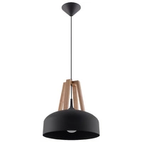 Závěsné stropní svítidlo CASCO E27 Skandinávská černá a dřevěná SOLLUX