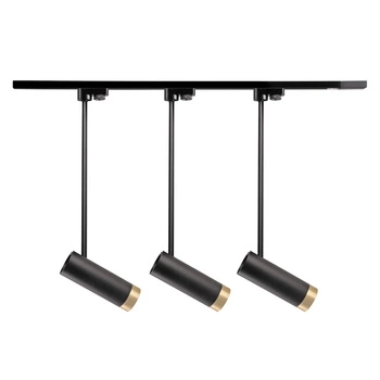 Sada přípojnic 1-fázová lišta + 3x reflektor GU10 černá zlatá PORTO Sanico Goldlux